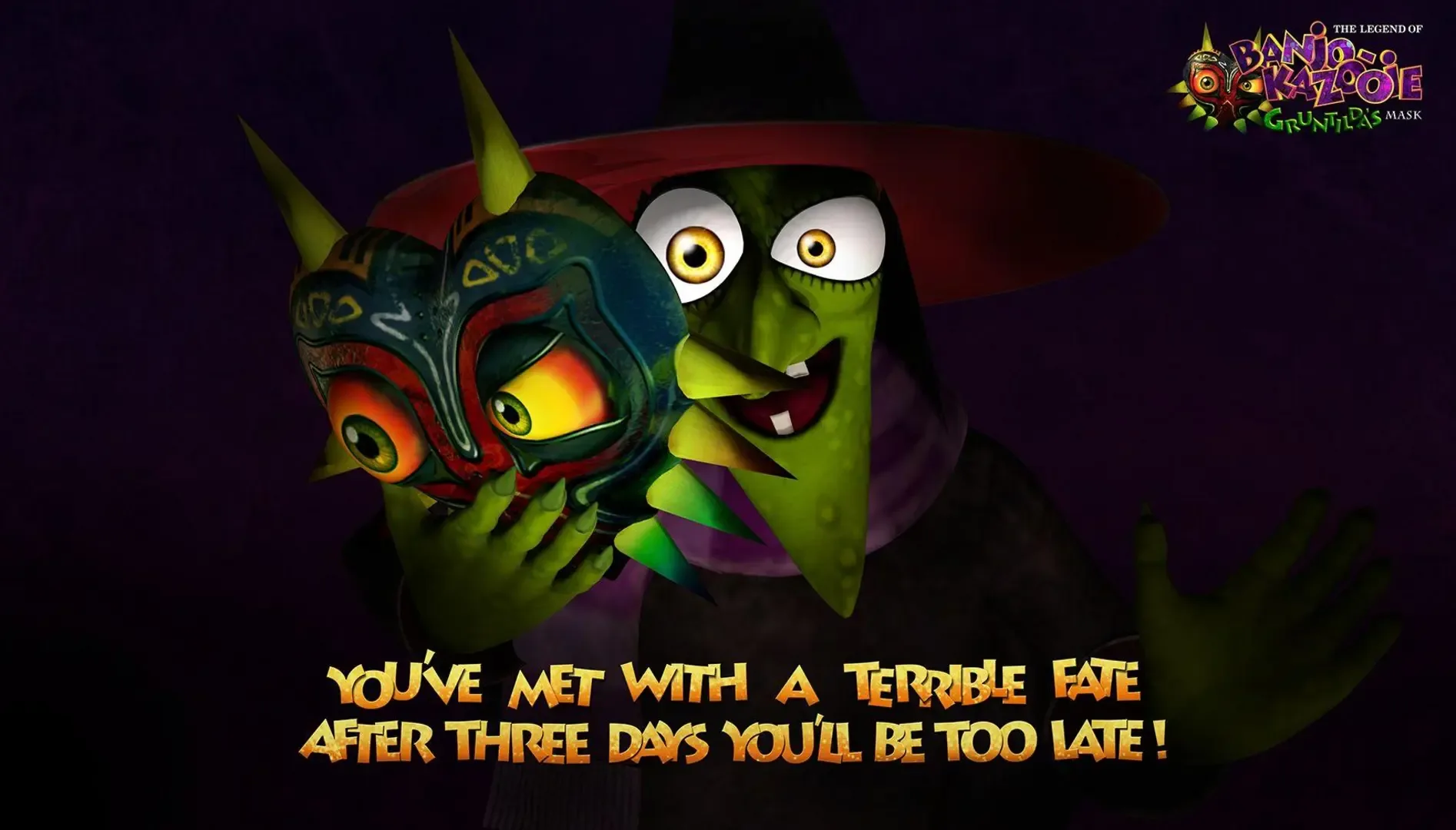A Banjo-Kazooie ROM hack which puts Banjo and Kazooie in Clock Town from The Legend of Zelda: Majora's Mask.