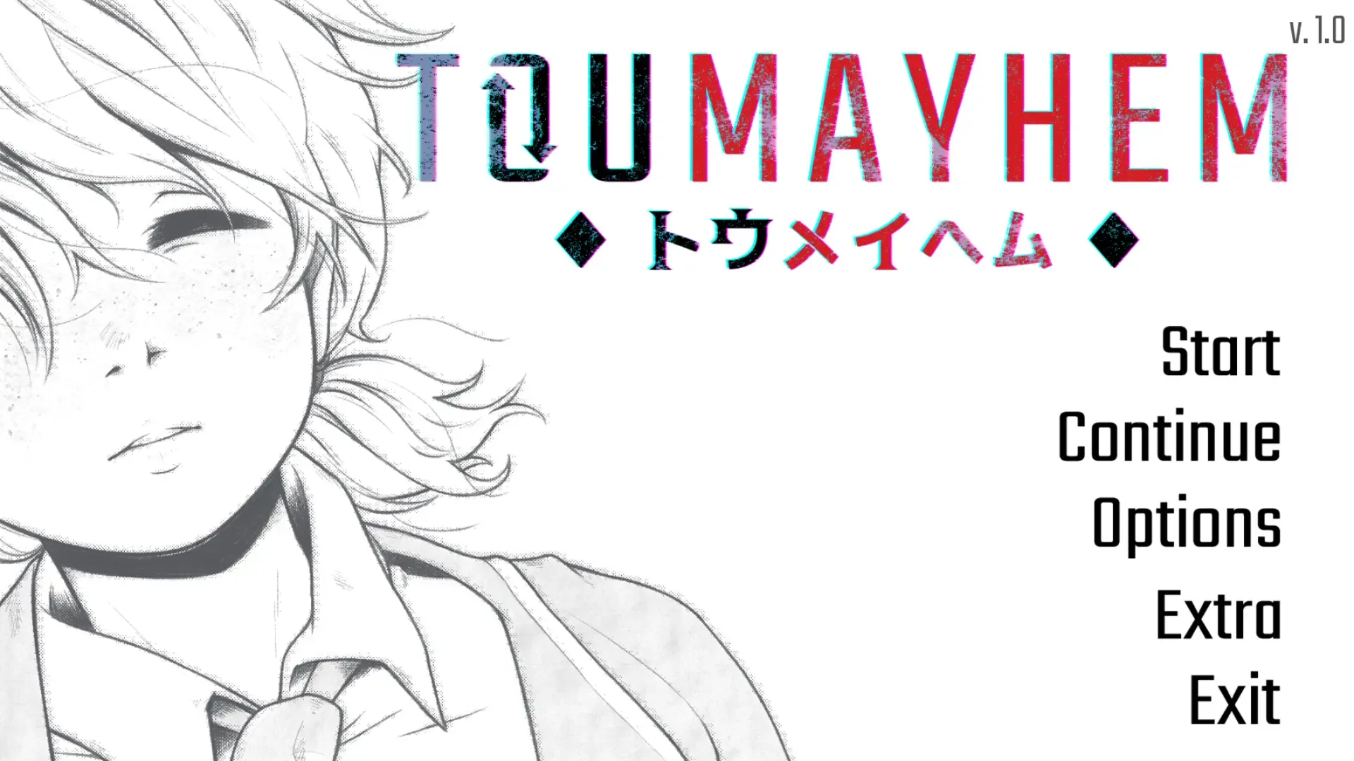 Toumayhem is a sci-fi/mystery visual novel set in Shigo Private High School, in Hokkaido; Yuki, a timid first-year, gets roped into a fight to overthrow the school's social system, and mixed up in a series of murders.