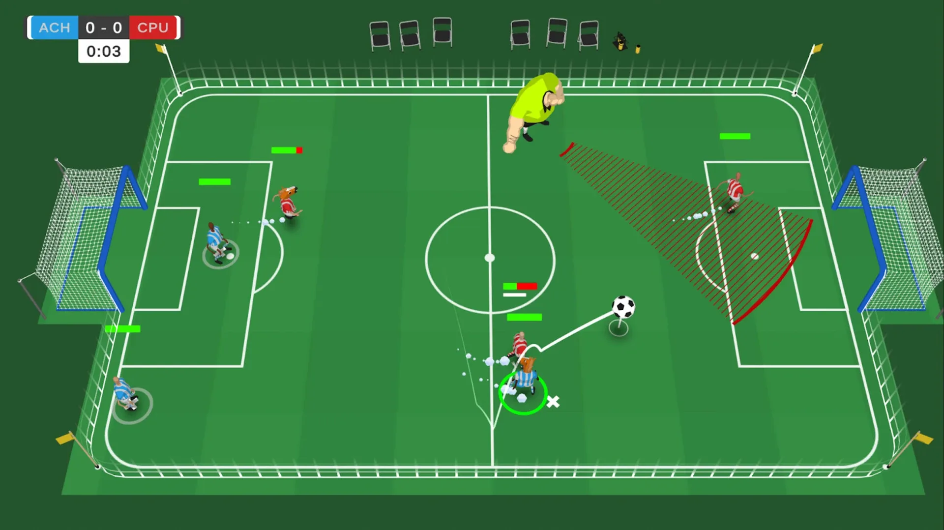 Classic RTS and Football meet in this explosive 1v1 game. Control all your players at once or separately in stadiums full of dangers for your players to avoid. Tackle, foul, and baseball bat your way to victory, just don’t get spotted by the referee…