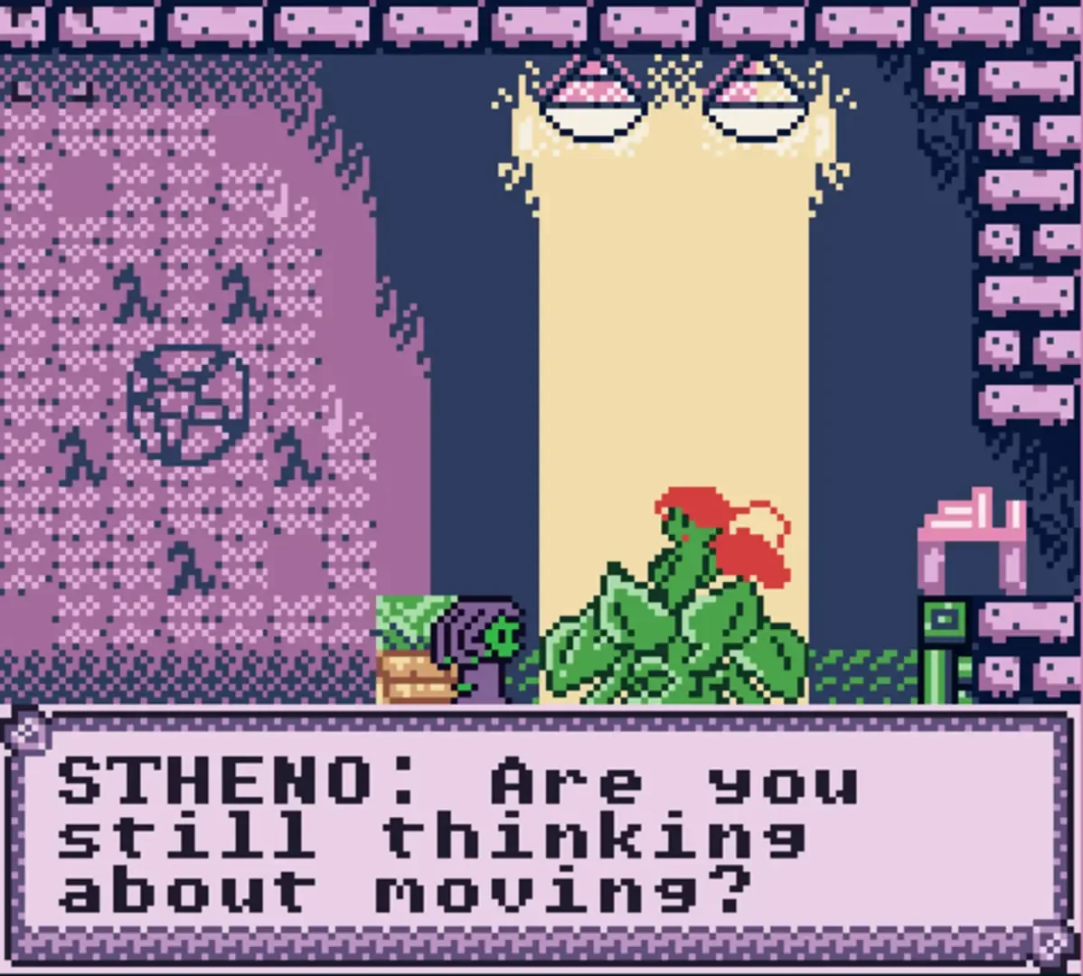 Stheno the gorgon wants her girlfriend Alraune to move in, but to accommodate a plantgirl Stheno's room needs an overhaul! Hopefully their castle community can provide everything they need to make the space comfy for both of them! Explore the Midnight Palace, ask your girlfriends and other monstergirls for help, and make the perfect two-lady lovenest! You might have to avoid some nasty traps or trounce a creepy human along the way, but in the end love always wins!