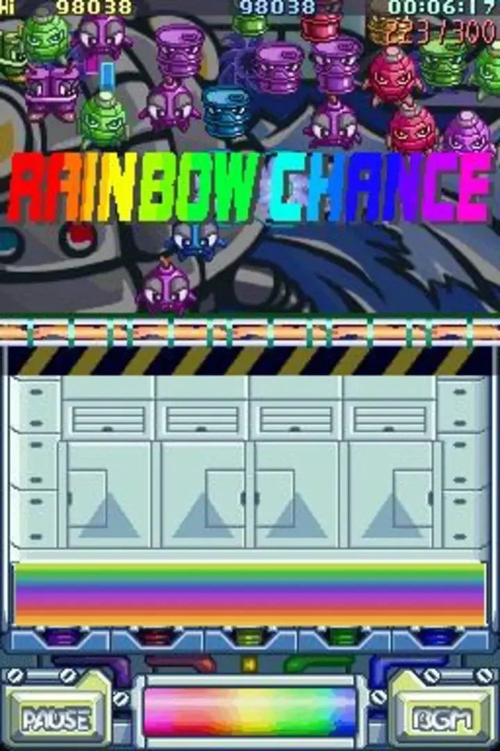 Color, aim and speed matter most in this new take on classic arcade style gameplay! Monster Bomber challenges you to power up and fling different colored balls on the Touch Screen to hit rapidly descending, multi-colored monsters on the top screen. Destroy all monsters and you pass the stage but if they reach you first, it's game over!