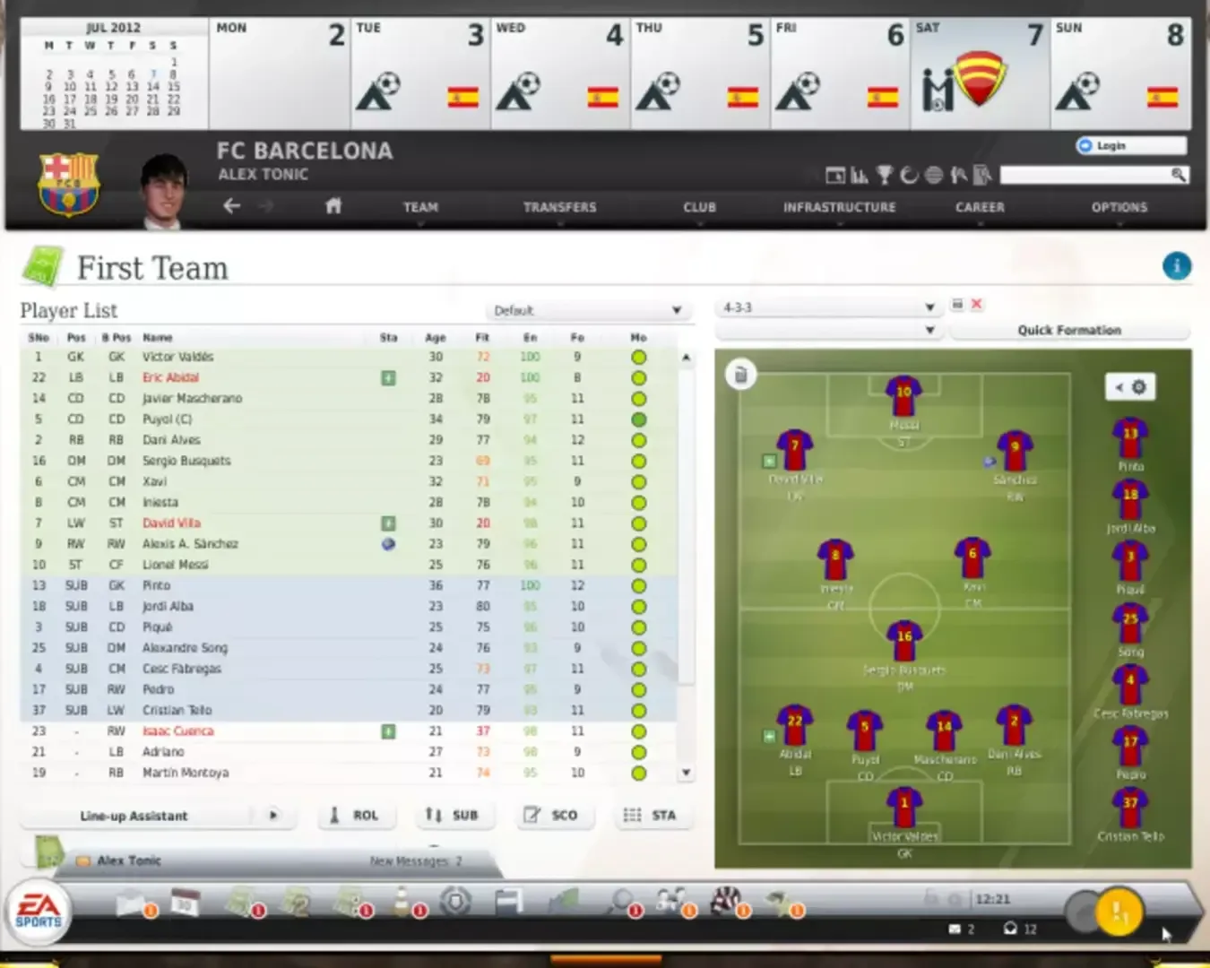 FIFA Manager 13 is a soccer managerial game. It is the 12th game in the FIFA Manager franchise. In this game, you take control of a football team, and basically control all functions of it. You can even found a club, and take it all the way to continental competition. Matches are presented in a 3D match engine, or as text commentary. The game interface is filled with menus, and you can switch from one to the other using widgets and the like.