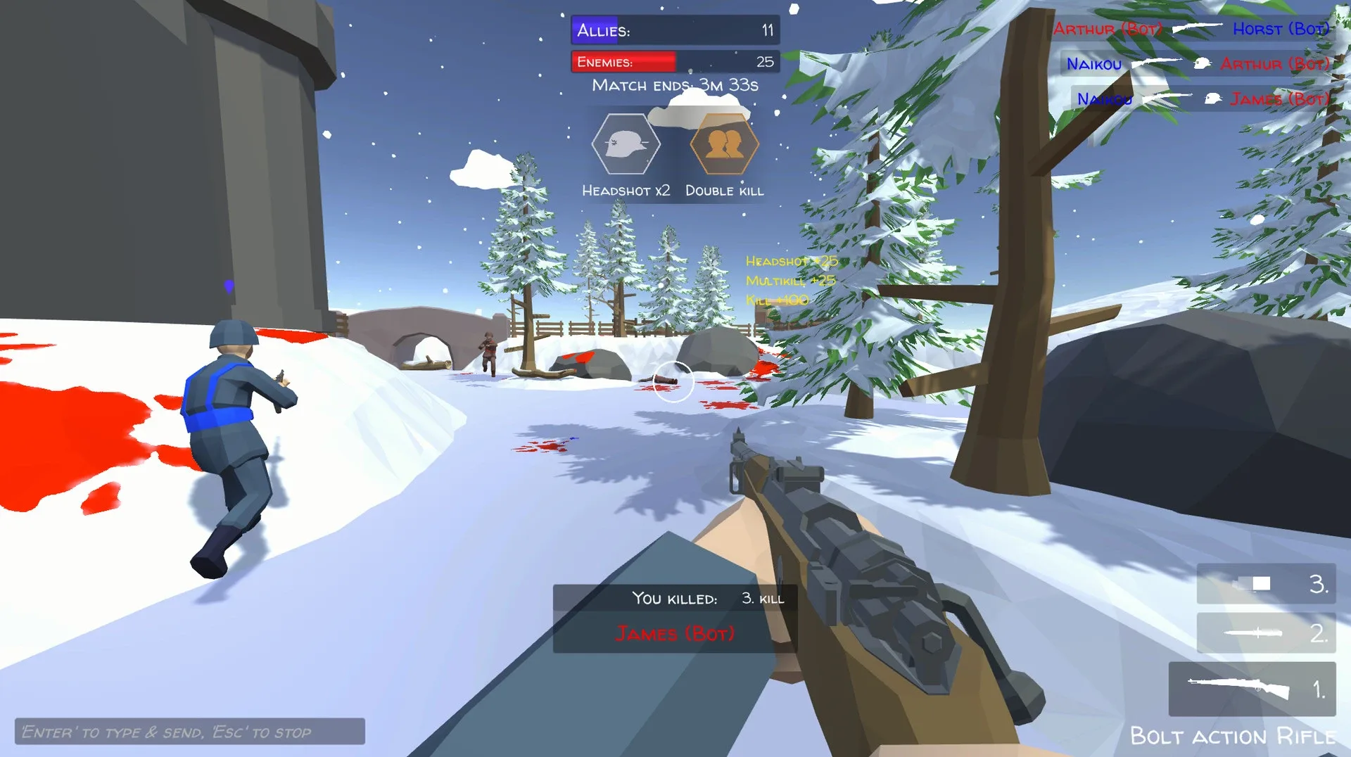 The Riflemen is a fun, fast-paced low poly FPS game where matches are short and full of action! All players start with bolt-action rifles & knives that they don't need to reload. Players can customize their weapons & characters to get the look that they want!