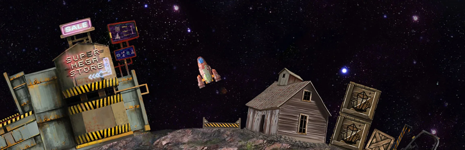 Explore the space and go for new adventures with this physics based space game! Discover steampunk themed planets, solve puzzles, gather resources, craft machines & systems and have fun with gravity in an open-world galaxy. Refuel, repair and upgrade your ship to find your way back to mother earth.