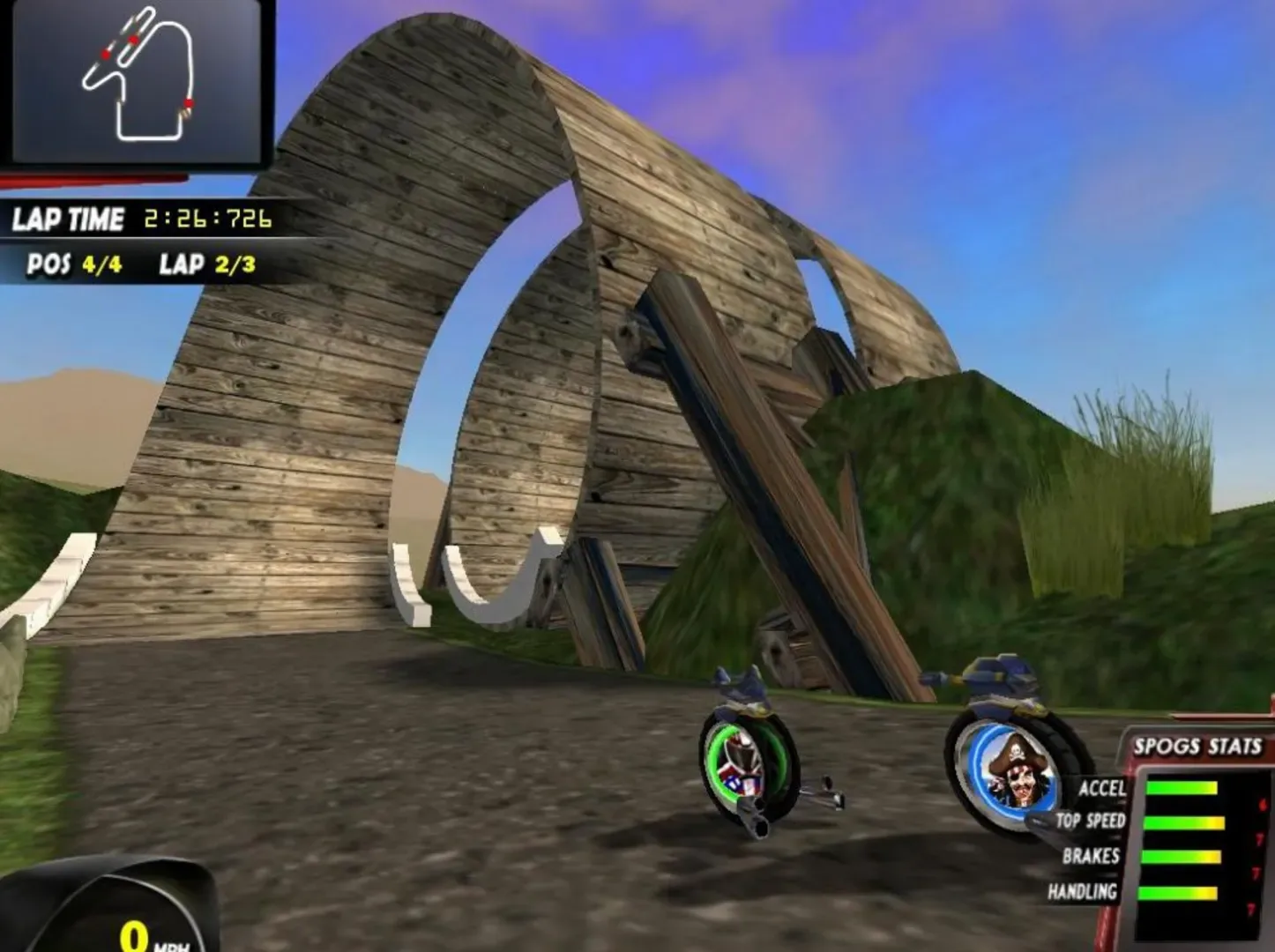 Spogs Racing is a racing video game published by D2C Games and developed by Pronto Games for the Wii. It was released as a WiiWare title in North America on July 7, 2008, and in Europe on July 18, 2008. It costs 1000 Wii Points and takes up 264 Blocks.