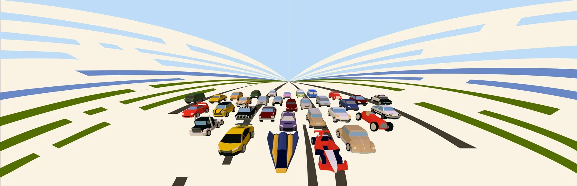 Speed is everything! Just go fast! Only one button needed. Accelerate and try not to crash. Single player arcade, daily online circuits, weekly online championships, split-screen local multiplayer and multiple cars to collect. May the speed be with you!