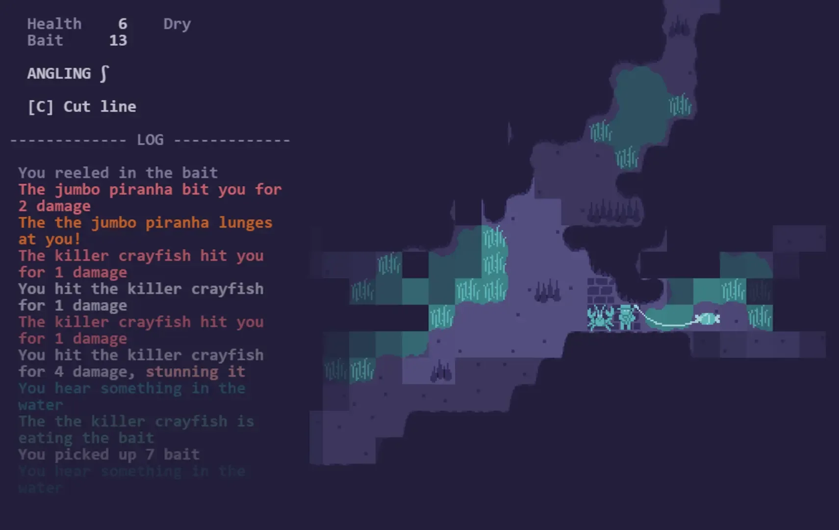 A roguelike where your only weapon at hand is a fishing rod. Classic roguelike gameplay with the twist of being able to lure enemies toward your bait instead of you. Attack them while they're eating for a critical hit! Explore the caves to find magic lures that provide unique game-changing abilities. Make your way to the surface to win!