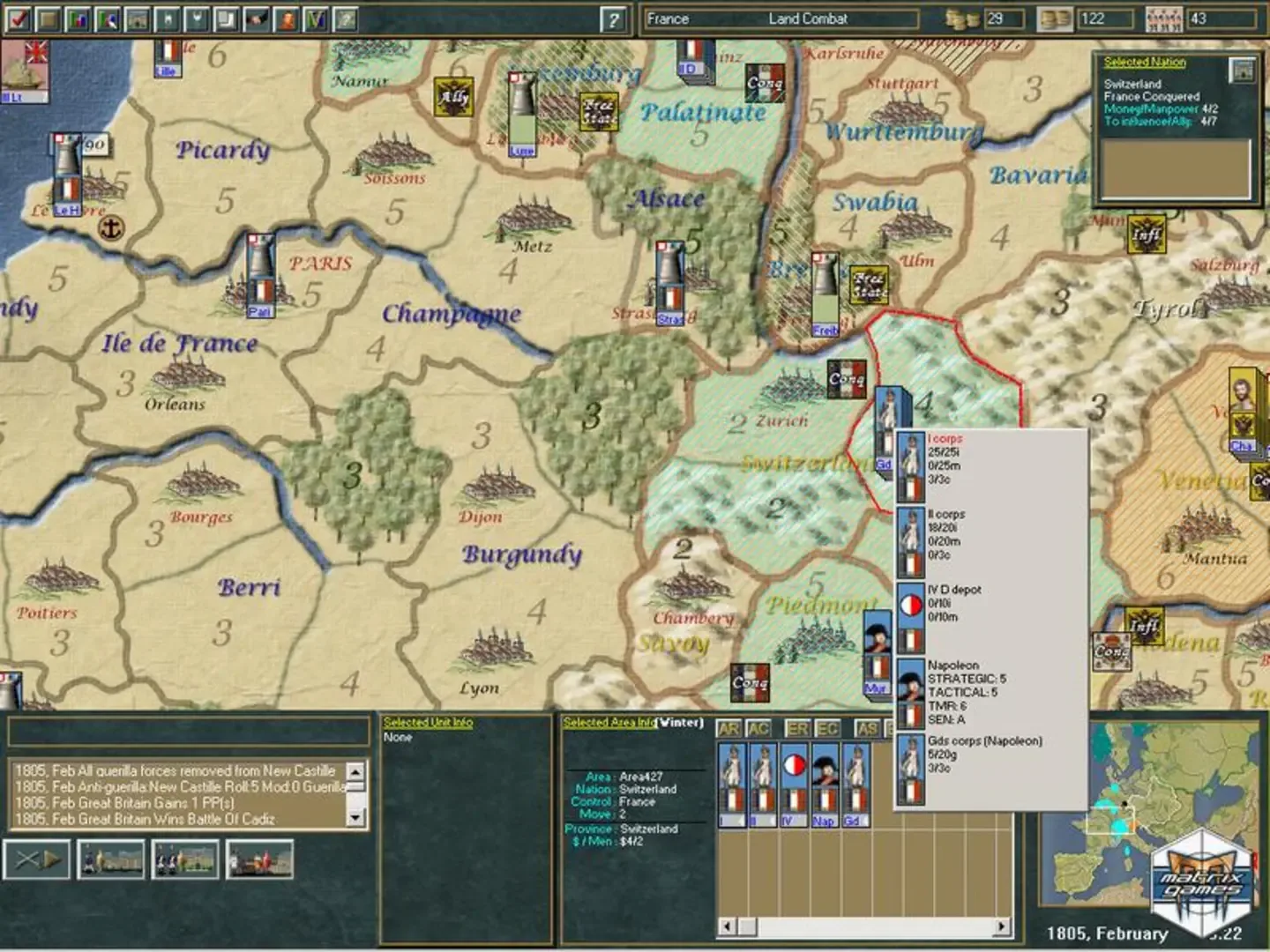 He who controls Europe, controls the world… Empires in Arms is the official licensed computer version of Australian Design Group's classic board game. Empires in Arms is a seven player game of grand strategy during the Napoleonic period of 1805-1815. Playable either solitaire against the AI or by e-mail. Corps level with full diplomatic options to allow players complete freedom to fight it out for control of Europe any way they want to.