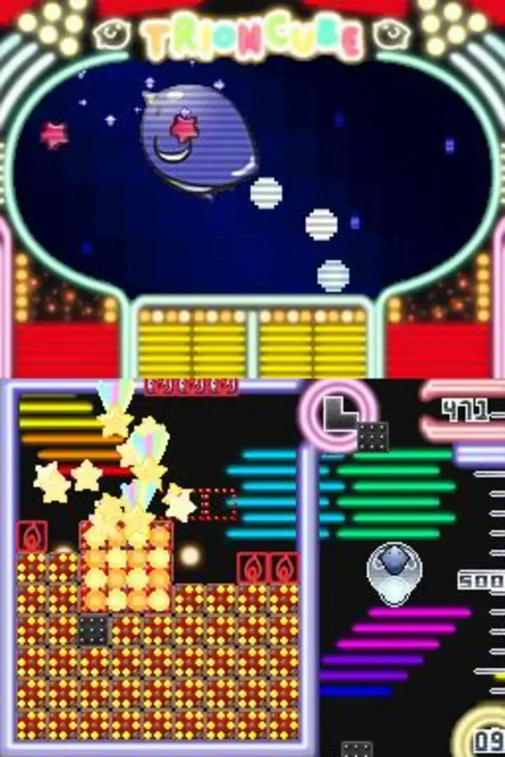 In Trioncube, the player must embark on a journey across eight planets into the depths of space, as the captain of the mighty space ship Penko, to rescue the princess from the grasp of Hell Metal. Players reach this goal by creating a Trioncube - a series of 3x3 blocks, which start a chain reaction that refuels the space ship.