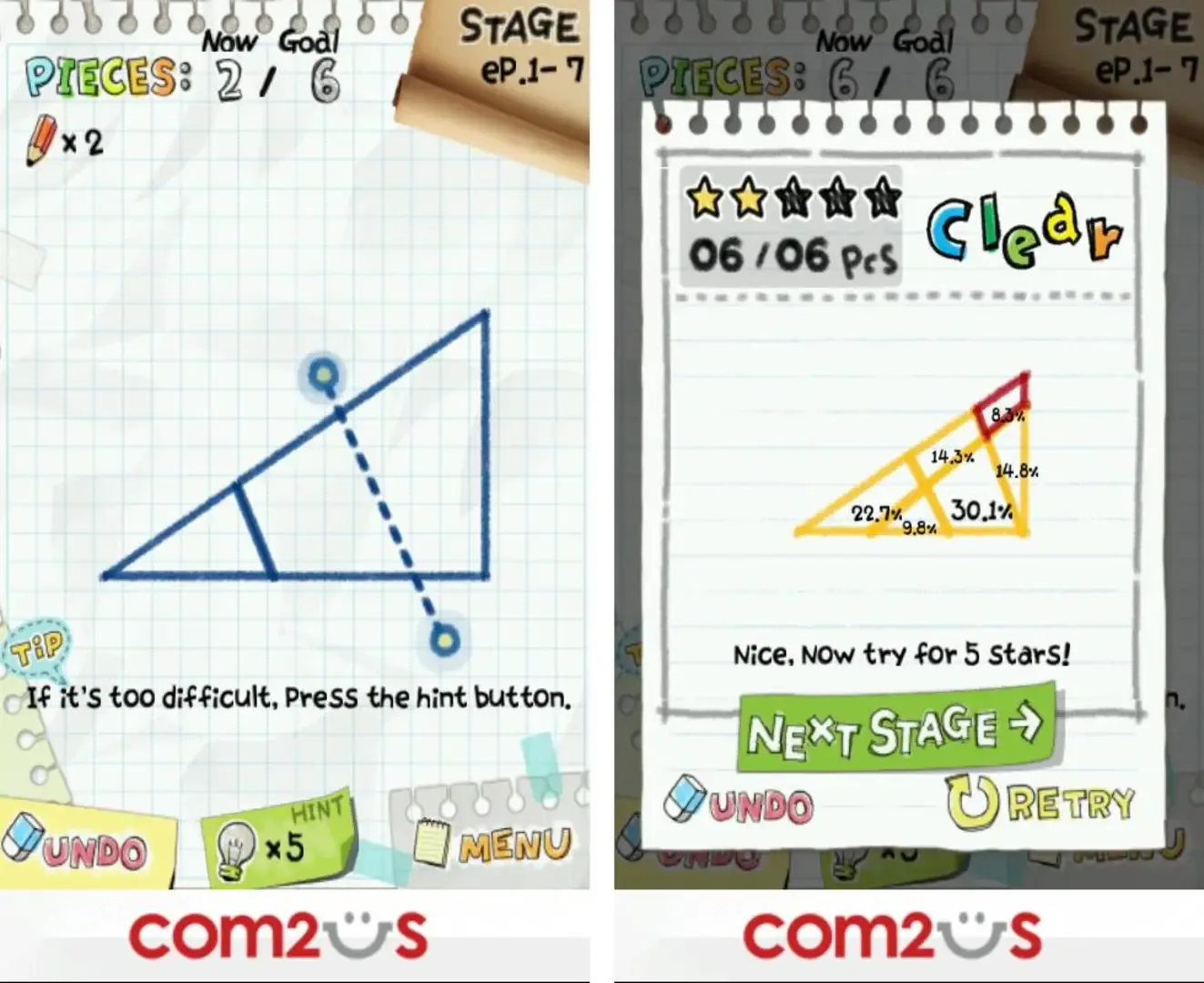 Fast Fun with a Geometric Flair! "Slice It!" is all about slicing shapes into fragments that are equal in size. Sound easy? It may start out that way, but soon you'll be cutting into fragments that will puzzle you like never before. Brainteasing puzzles: over 200 Basic Stages and a five-star rating system so you can play until you get it right!