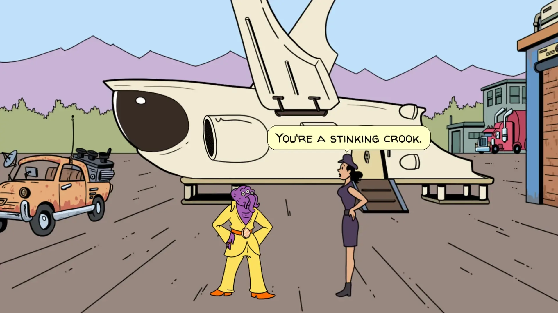 Thinking about buying a used spaceship? Think again! In this cautionary tale of great emotional impact (?), our heroine Clotilde finds herself stuck on an old spaceship, directed towards the sun! Only you can save the ship! Oh, and her life too. One player character! Lots of stuff to click on! Comic book style cutscenes! 720p graphics! Lots of pixels for the whole family! No less than 13 inventory items! 15 rooms, not even a third of them playable! No moral choices whatsoever! So many puzzles! Several gripping minutes of gameplay!