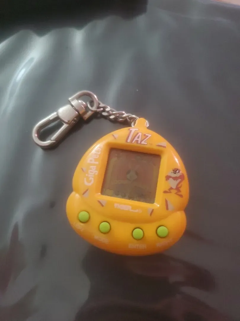 Giga Pets are digital pet toys. Available in a variety of different characters, each Giga Pet is a palm-sized unit with an LCD screen and attached key ring. To ensure a happy, healthy pet, its owner has to take care of it similar to how one might care for a real animal, including feeding, cleaning, and playing with their Giga Pet.