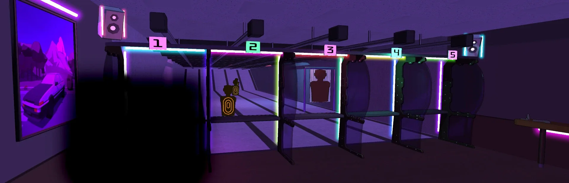 A casual retro cyberpunk sandbox first-person shooter with object destructive physics.