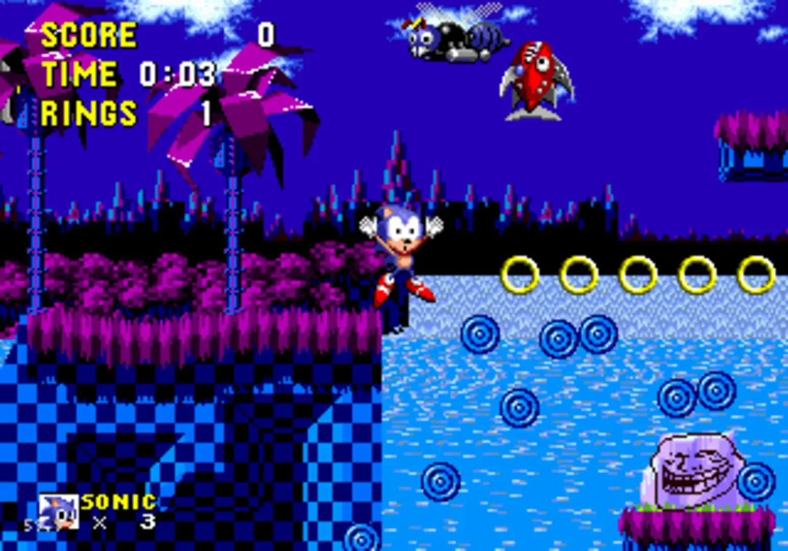 Sonic 1, except you are constantly being trolled. A funny sonic hack with a lot of trolling going on. Sonic in Troll Island is a Sonic 1 hack, which main focus is to be a very fun and entertaining game for those who will play, with some pretty funny stuff at the levels and with a great soundtrack too!