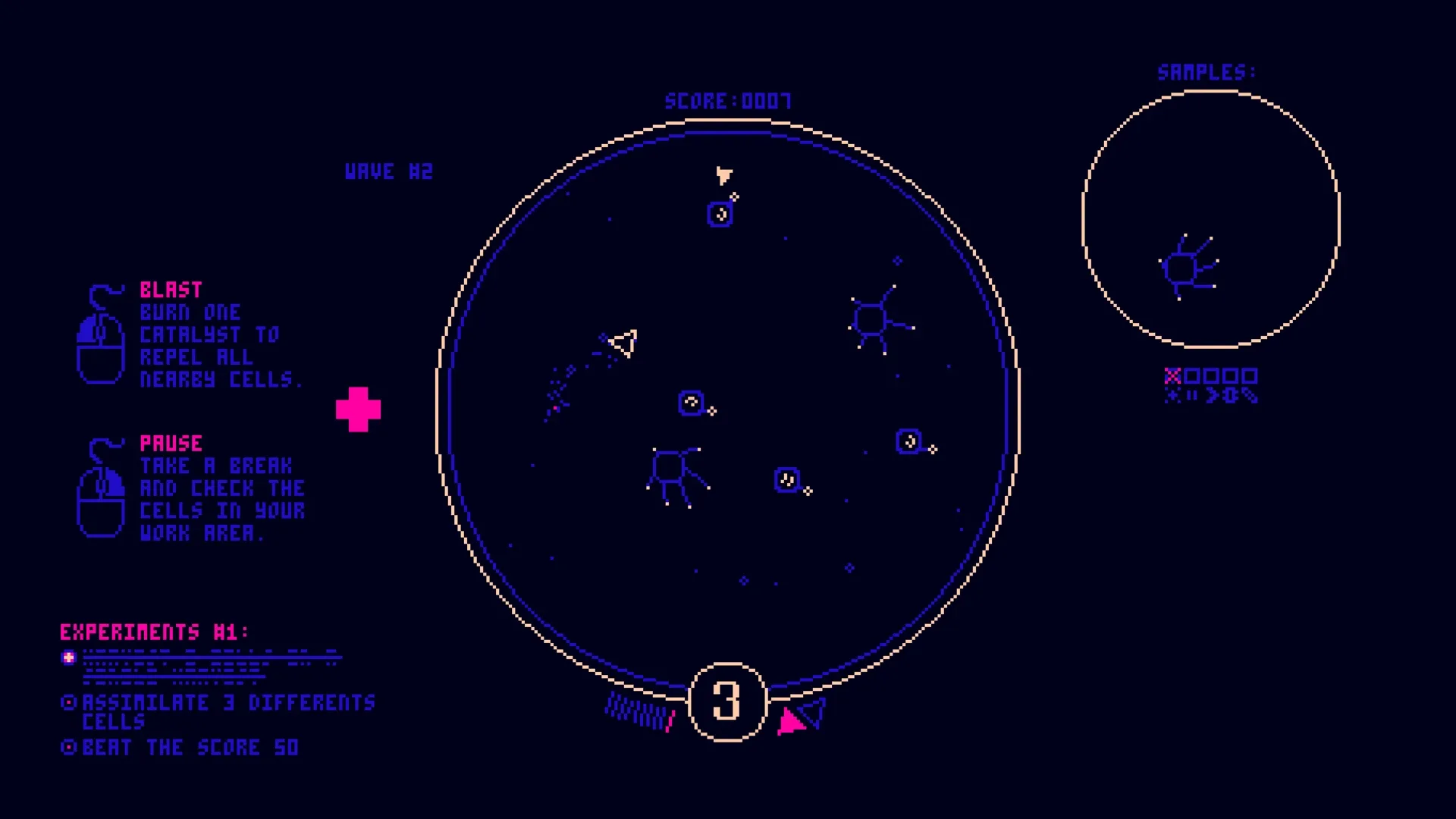 Harvest DNA and assimilate new samples for your paramountly important research. Your laboratory is located in a warzone, resulting in limited access to energy sources. Your agent can only launch a harvest every 10 seconds. Do your best despite these harsh conditions.