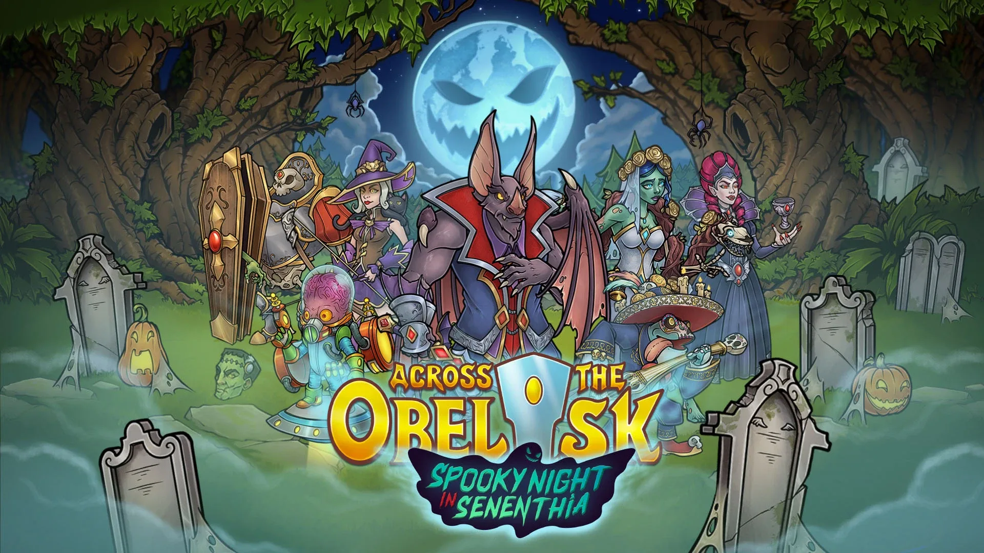 A sinister moon rises over Senenthia and our heroes dress up for the occasion. With this DLC, you will get 7 new Halloween themed skins and 1 exclusive cardback for your heroes.