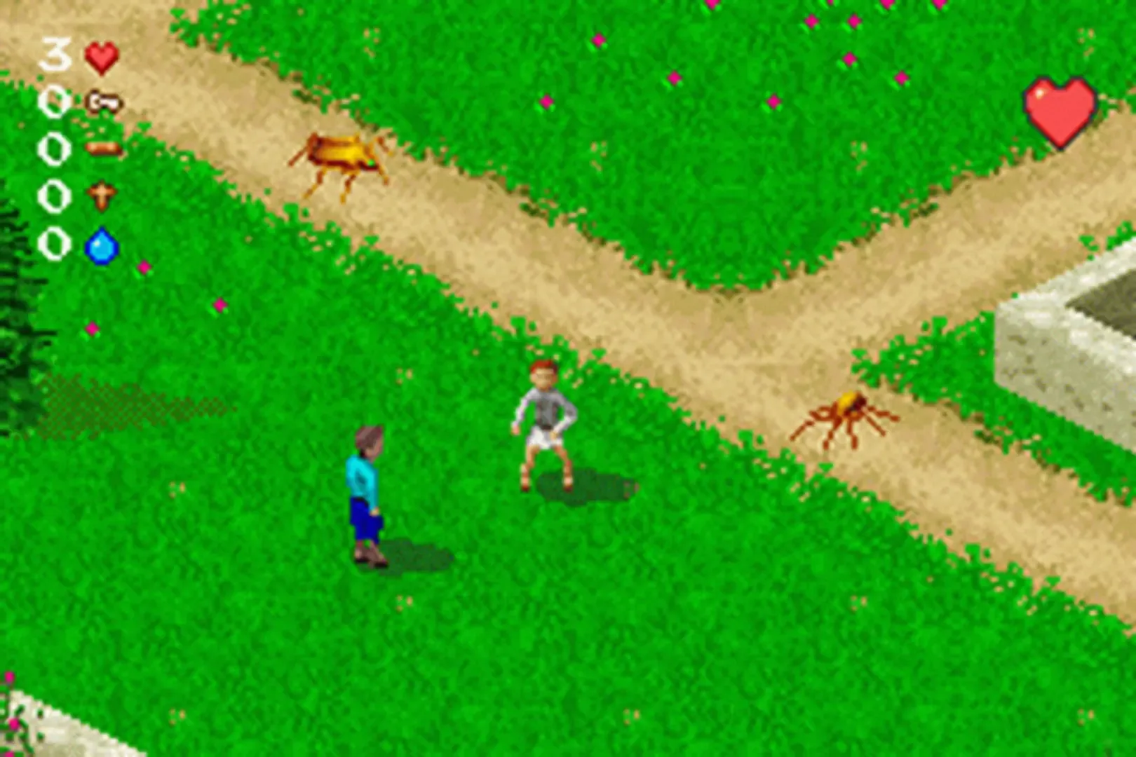 A trivia game to test gamers' biblical knowledge, The Bible Game for Game Boy Advance combines action/adventure play style with trivia challenges. In their quest to protect the Armor of God, players may choose to play as either Billy or Jenny across seven levels including forest, snowy tundra, desert, and tropical island environments. Along the way they must answer questions from both the Old and New Testaments. Either the New International Version or King James translation may be selected, and three levels of difficulty keep the game accessible for all ages.