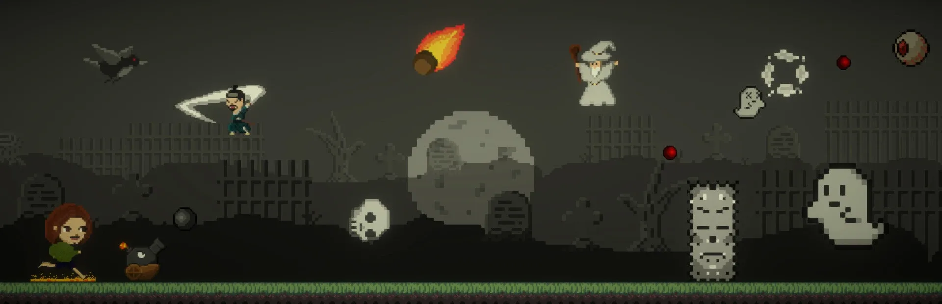 A retro style game that can be played in 2D platformer mode and top-down mode. Hunt monsters, collect coins, and buy weapons to become stronger. Play with 3-classes and a variety of weapons. Enjoy cute retro style pixel art that you see on a nostalgic CRT monitor filter.