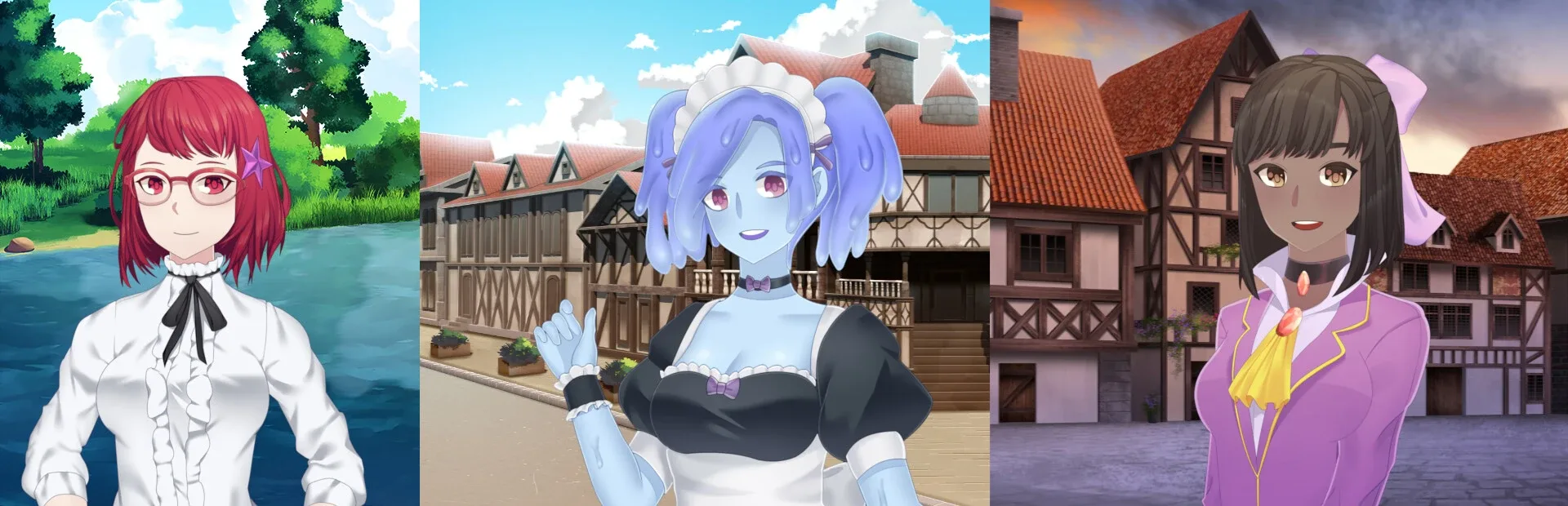Join the cool and sociable MC's RPG medieval-themed, romance-comedy, fantasy visual novel adventures with his magical, beautiful monster girl, slime maid, to become the best Adventurers in the country.