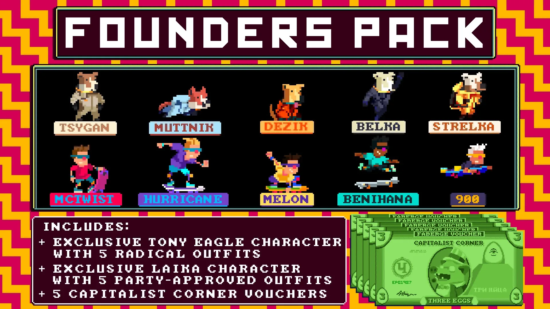 Get access to Laika + Tony Eagle (exclusive playable characters with 5 outfits each) and 5 Capitalist Corner Vouchers!