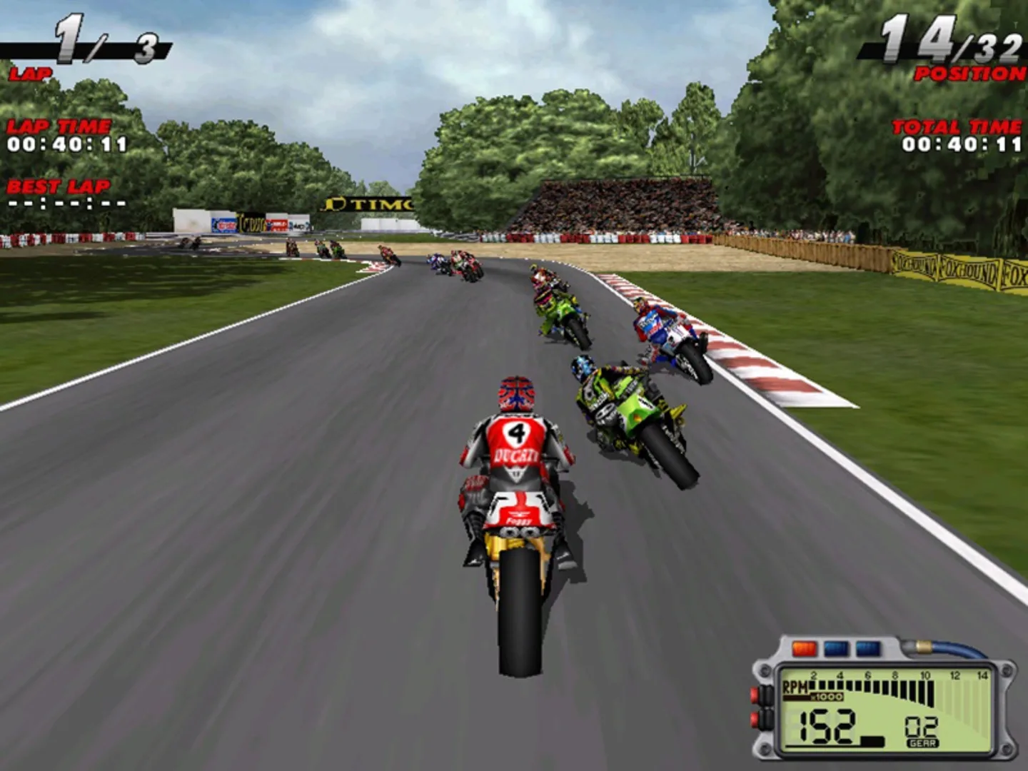 Superbike World Championship is the first product after the Screamer saga that Milestone develops with Electronic Arts. The game emulates the real physics of all five championship bikes (Ducati, Honda, Kawasaki, Suzuki and Yamaha), carefully reproducing the rider, his movements both on the ground and on the bike, and the real tracks of the Superbike World Championship in all their details and different atmospheric conditions. Six game options and eight realism settings (braking, traction control, assisted ride, Championship rules, etc) contribute in giving to this title a simulative yet funny driving experience, immersing the player in the Superbike world. The available game modes are Arcade and Simulation. Both have their own characteristics and allow the game to be adapted to the target. Arcade mode allows to select the bike to race with, the rider - his name can even be changed - and whether to start a single race or a full Championship. All that needs to be done is win all the single GPs or get the first position by the end of the Championship. In order to win a Championship in Simulation the player must get the best out of his bike by changing all the parameters that the game offers. Superbike World Championship provides 12 circuits around the world including Monza, Laguna Seca and Brands Hatch. Various bikes from the 1997 season are available in arcade and simulation modes; from Ducati, Yamaha, Suzuki and Kawasaki, driven by aces such as Kocinski, Carl Fogarty, Scott Russell, Aaron Slight and Pierfrancesco Chili.