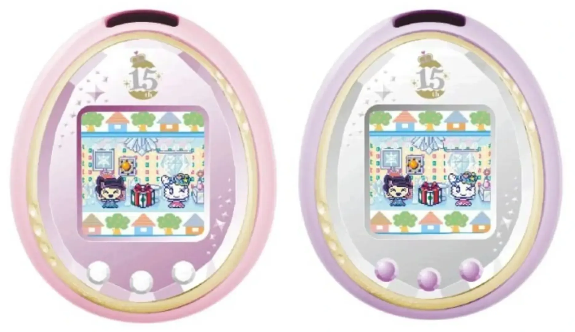 The Tamagotchi iD L 15th Anniversary Version is the limited edition fifteenth anniversary Tamagotchi iD L. It was released on November 23, 15 years after Tamagotchi first debuted. It comes in two colors, Royal Pink and Royal Purple, and has 11 new characters added. The baby, child, and teen characters return from previous entries in the Tamagotchi series. The new adult characters were pulled from the top rankings of a popularity poll featuring vintage, plus era, and anime-exclusive characters. There are also new locations and Henshin Jo transformations.