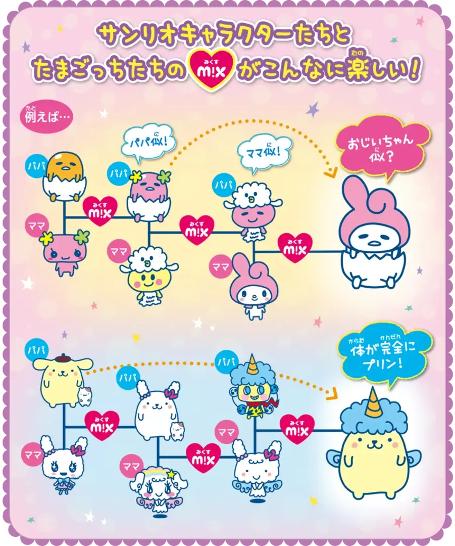 Tamagotchi m!x Sanrio m!x version a special licensed variant of the Tamagotchi m!x which includes exclusive access to Mariland, Twin Stars Land, and Puroland, and the ability to interact with and marry Sanrio characters.