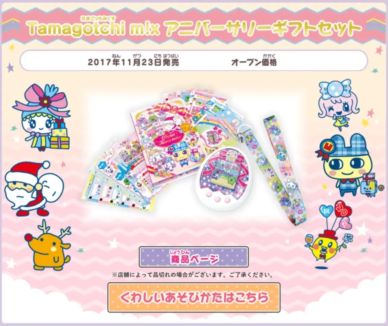 Tamagotchi m!x Anniversary Gift m!x version is a special version of the Tamagotchi m!x released in a gift set, this features all of the same locations as the 20th Anniversary version, but also includes exclusive access to Present Island and its characters.