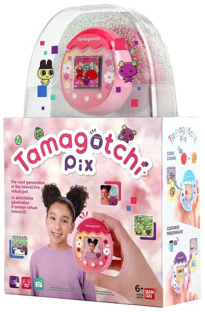 Tamagotchi Pix is a color-screen virtual pet released in mid-2021. It is the first color Tamagotchi to be produced specifically for an international market, and was not released in Japan. The Pix features a camera and touch buttons, which tie into the new gameplay.
