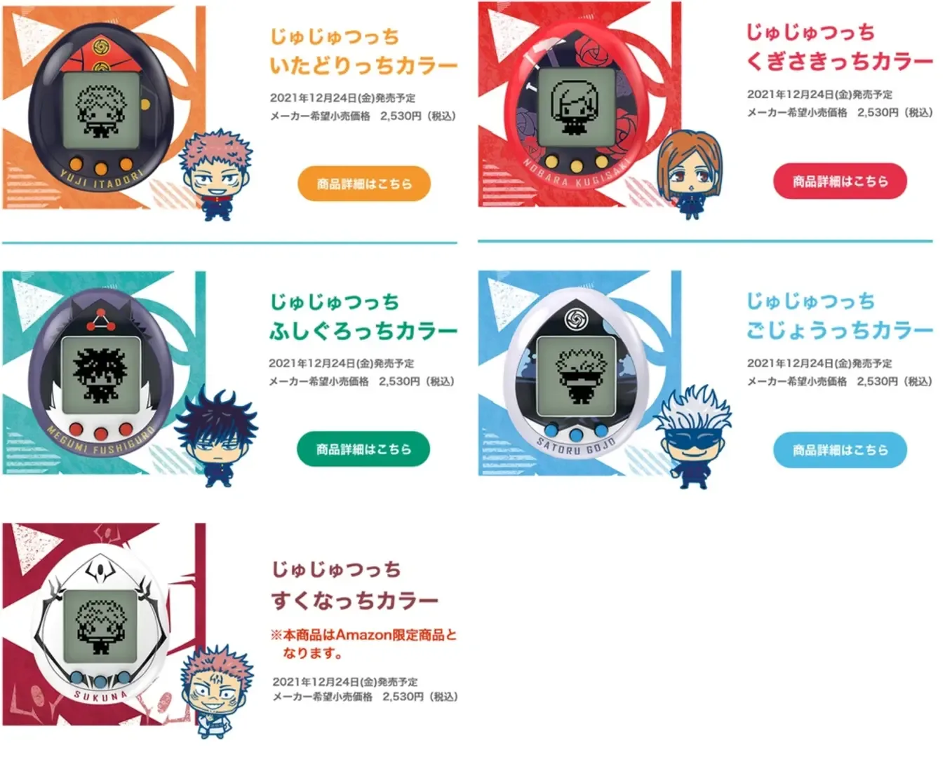 The Jujutsutchi is a licensed Tamagotchi Nano model based on the anime and manga franchise Jujutsu Kaisen.