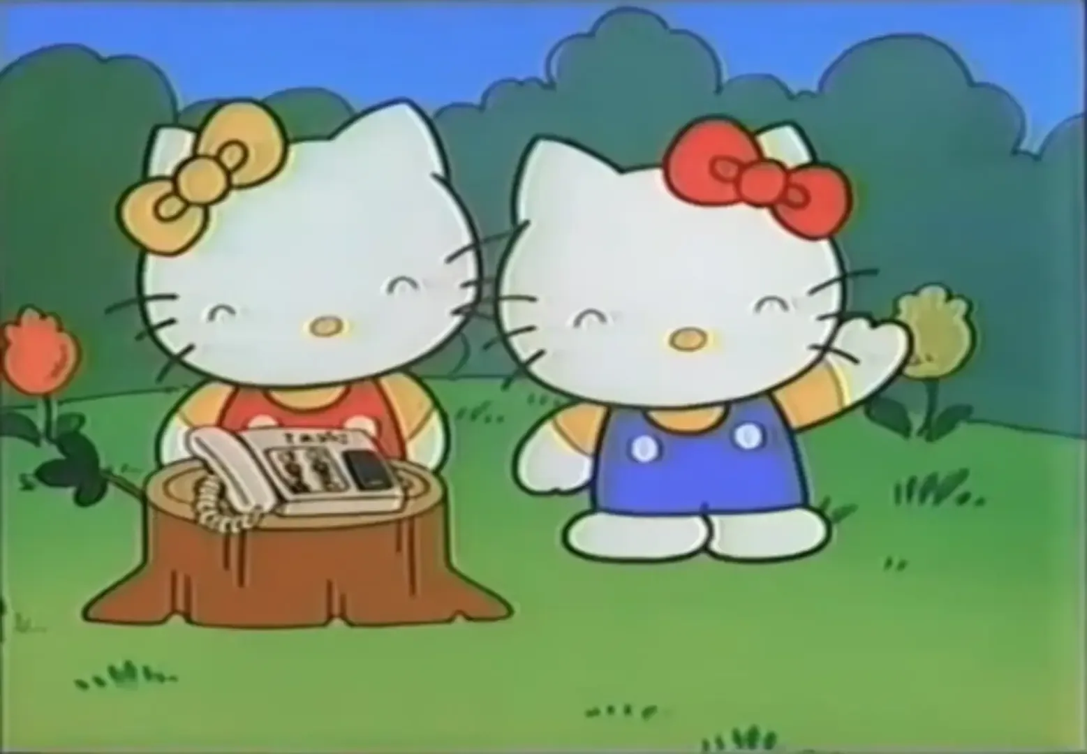 An interactive movie/game for the Terebikko where Hello Kitty and Mimmy go out shopping, and the player has to answer questions both about the items and etiquette while eating. Mama and Papa appear with them, and other Hello Kitty characters (bear, dog, goat, and plush toys) appear as well.