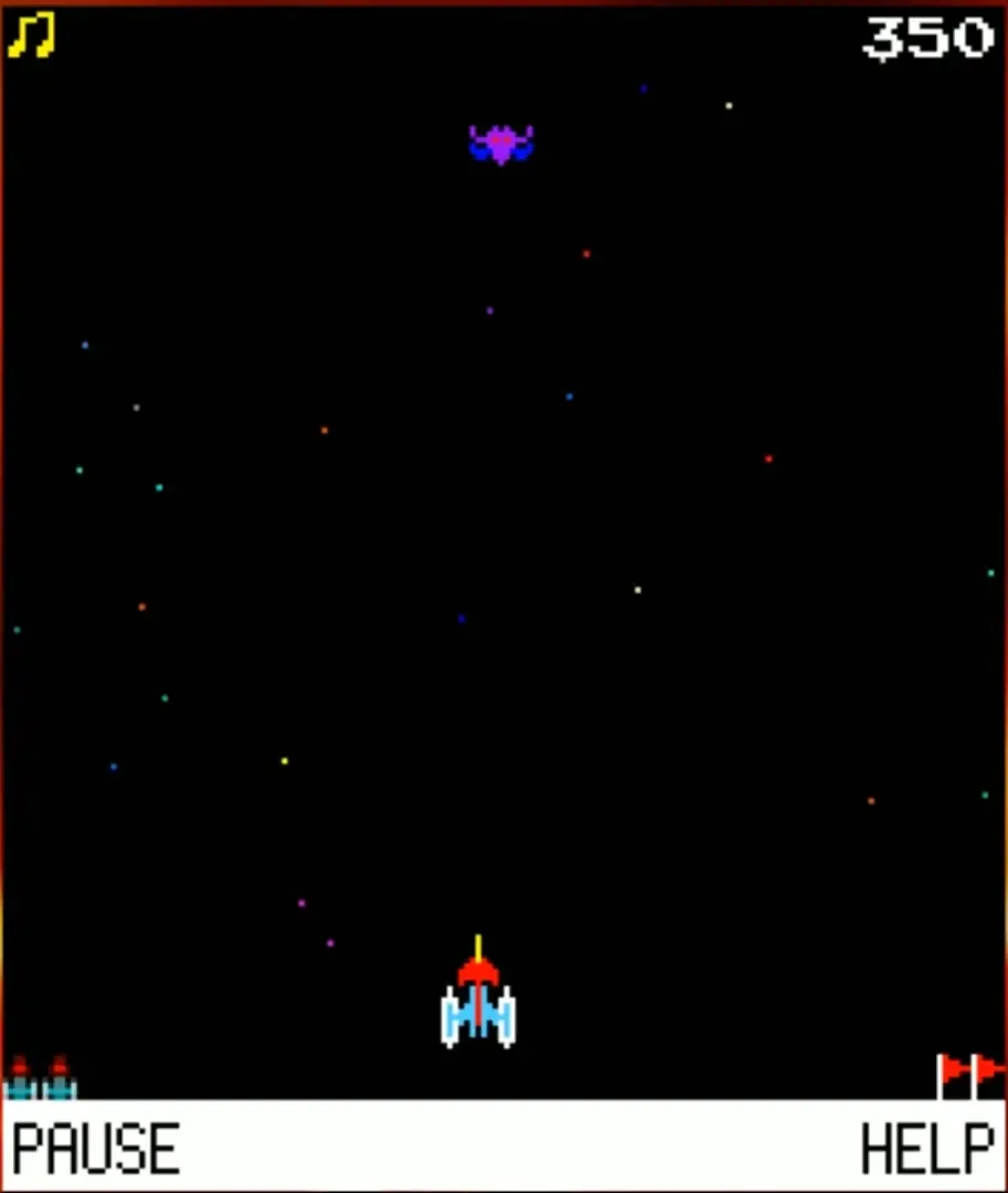 "Miniature" remake of Galaxian. Gameplay involves shooting down small formations of diving enemies.