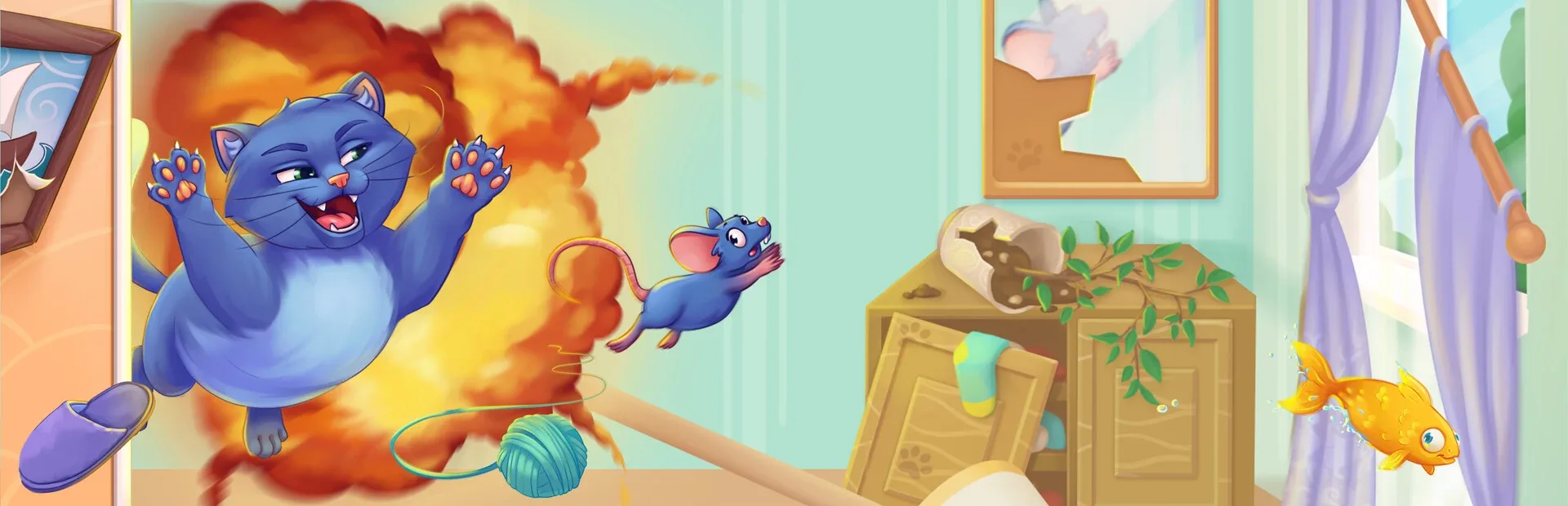 The cat, named serious Sam, is very upset when the house is in order and everything is in its place. Help Sam get inner peace.