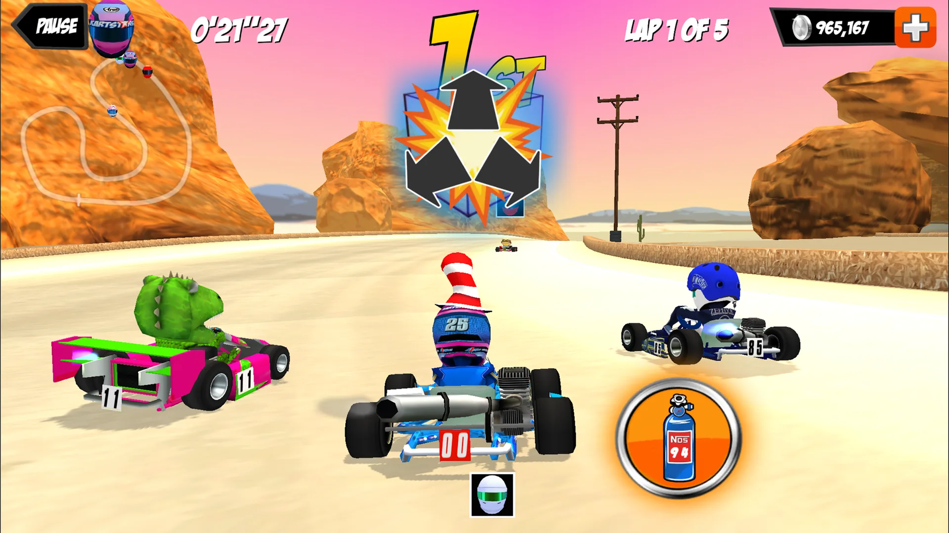 Welcome to the World Karting Championships! Race through a single player campaign or go head to head with players from around the world. Feel the rush as you play through vintage, sprint and super karts in a massive 300 round world championship season. Outrun the competition and finish on the podium to earn coins, upgrade your kart, and become the World Karting Champion!