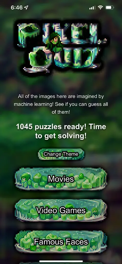 PixelQuiz is a game where the player is shown a pixel-art image generated by AI / machine learning and they must guess what game, movie, etc.
