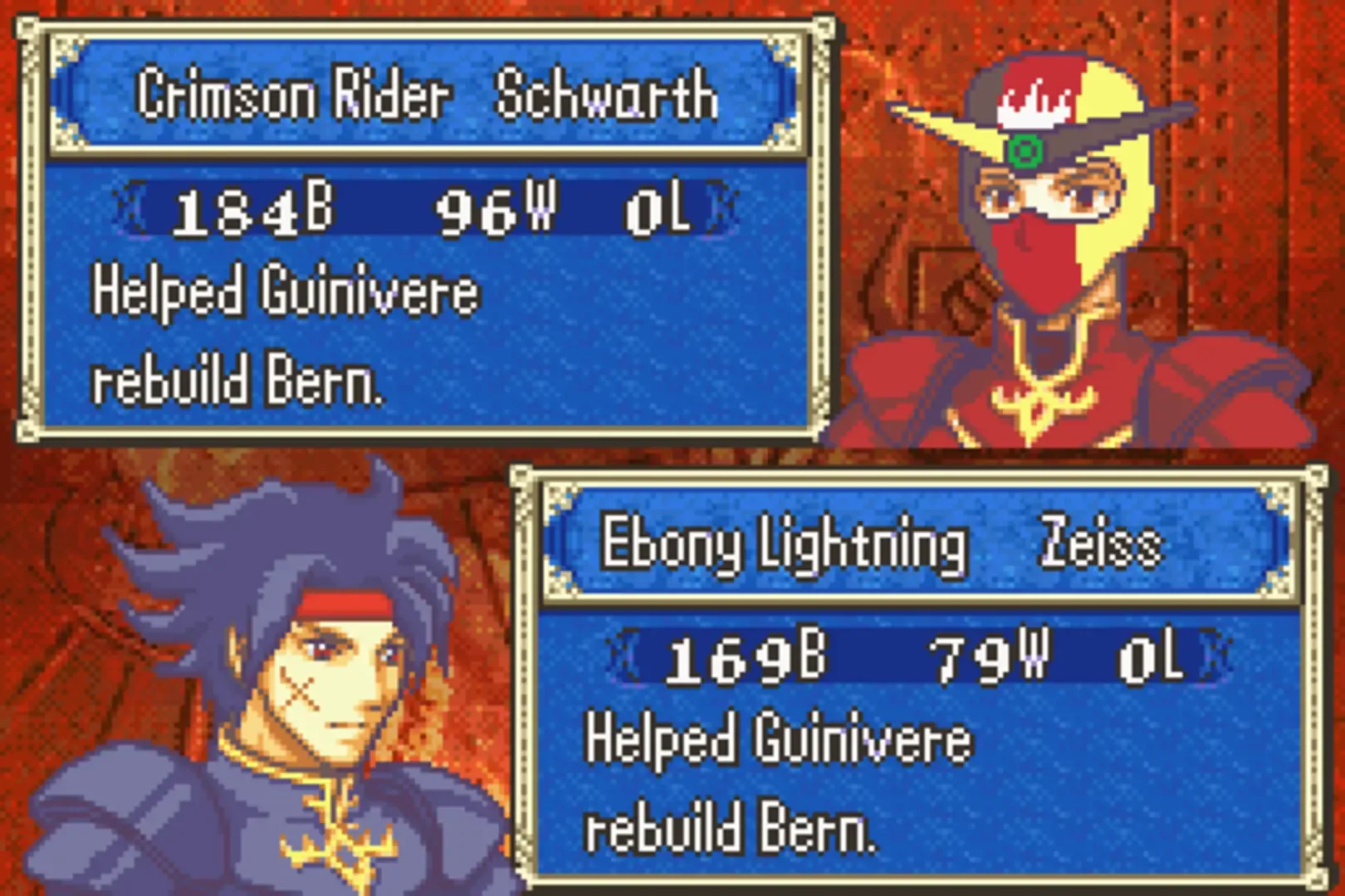 In May of 2015, Something Awful user Vilkacis would do a let's play thread of Fire Emblem: The Binding Blade, albeit with a twist. Vilkacis had some degree of experience with hacking Fire Emblem games and would make changes to the game such as making Noah a dark mage with the portrait of a Phantasy Star character, giving Ogier a speed growth that's over 100%, and making Zephiel one of the most overtuned boss fights in the series. Roy's Bizarre Adventure is the final version of this hack that was released in the thread's final update.