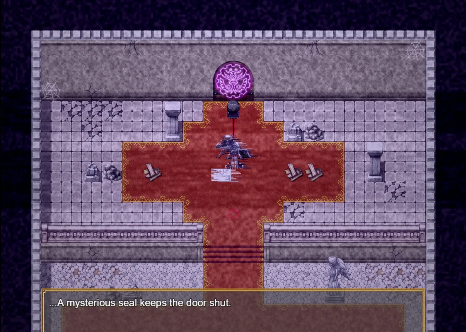 An atmospheric, top-down mystery/adventure game. Explore parallel versions of an old castle: one pristine, one ruined. Study scripture and lore, solve riddles, unearth secrets, dispel magic barriers. Find, confront, and defeat what lurks beyond the seal in the throne room.