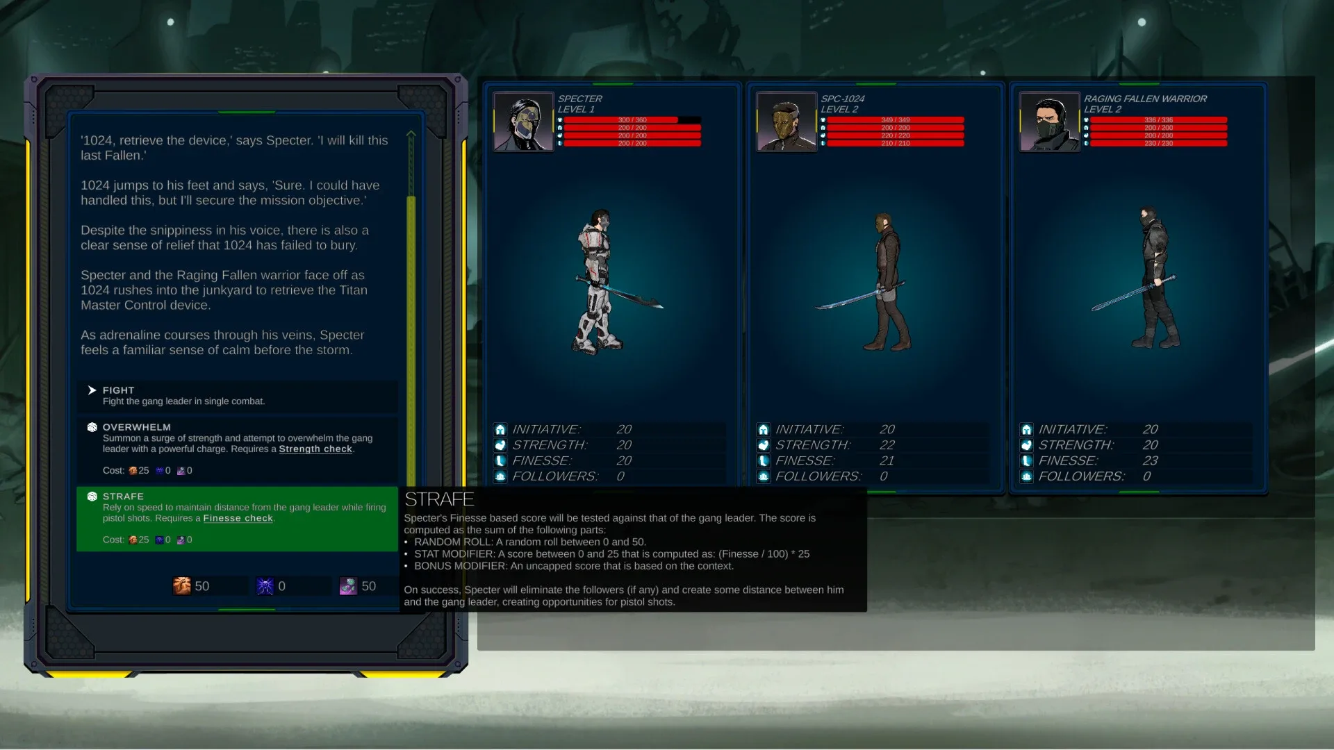 The Specter Chronicles is a cyberpunk visual novel that combines text-based adventure with turn-based tactical combat.