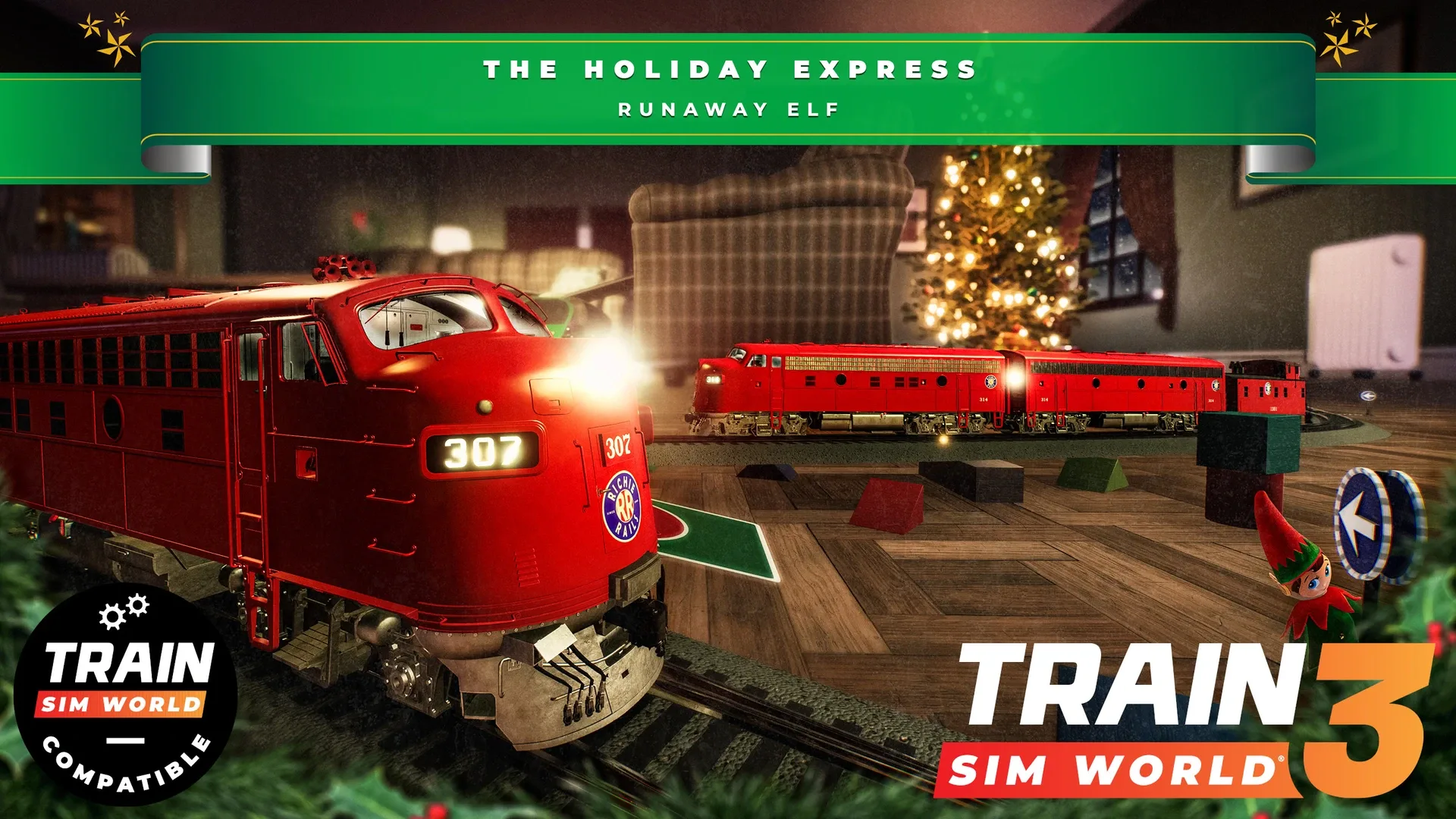 With Train Sim World 3: The Holiday Express - Runaway Elf, drive a model locomotive around a nostalgic 1980s living room and complete unique challenges before Christmas Morning arrives! Can you stop the mischievous Elf from ruining the big day?