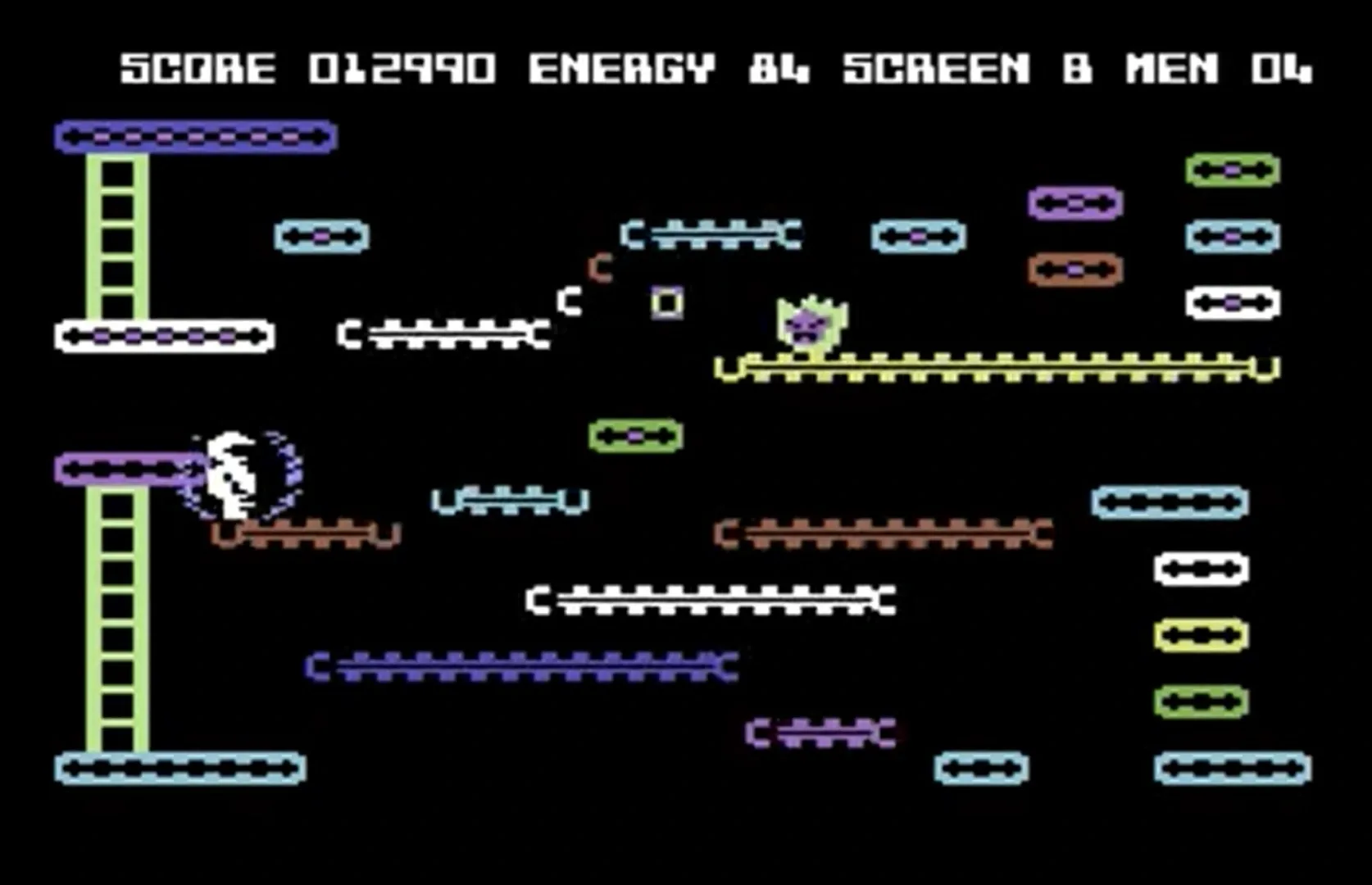 Mr. Robot and His Robot Factory is a single-player platform game created for the Atari 8-bit family by Ron Rosen and ported to the Apple II and Commodore 64. The music for the Atari 8-bit version is by Gary Gilbertson (using Philip Price's Advanced Music Processor) and published in 1984 by Datamost. Robert McNally performed the Apple II translation.[2] The player controls a humanoid robot that must climb and jump its way through a factory. The factory is filled with suspended platforms, ladders and conveyors belts. The game includes a built-in level editor.