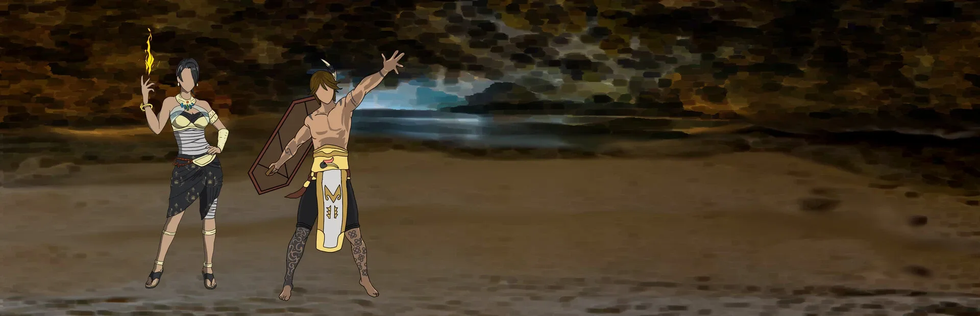 Dongeng Bayang Kulit is a turn-based RPG that is loosely based on Southeast Asian folklore. You play as the recently ship-less, Captain N'man and his mystical guide, Putri Matami as they travel in search for answers regarding a mysterious apparition that has taken to incessantly haunting N'man.