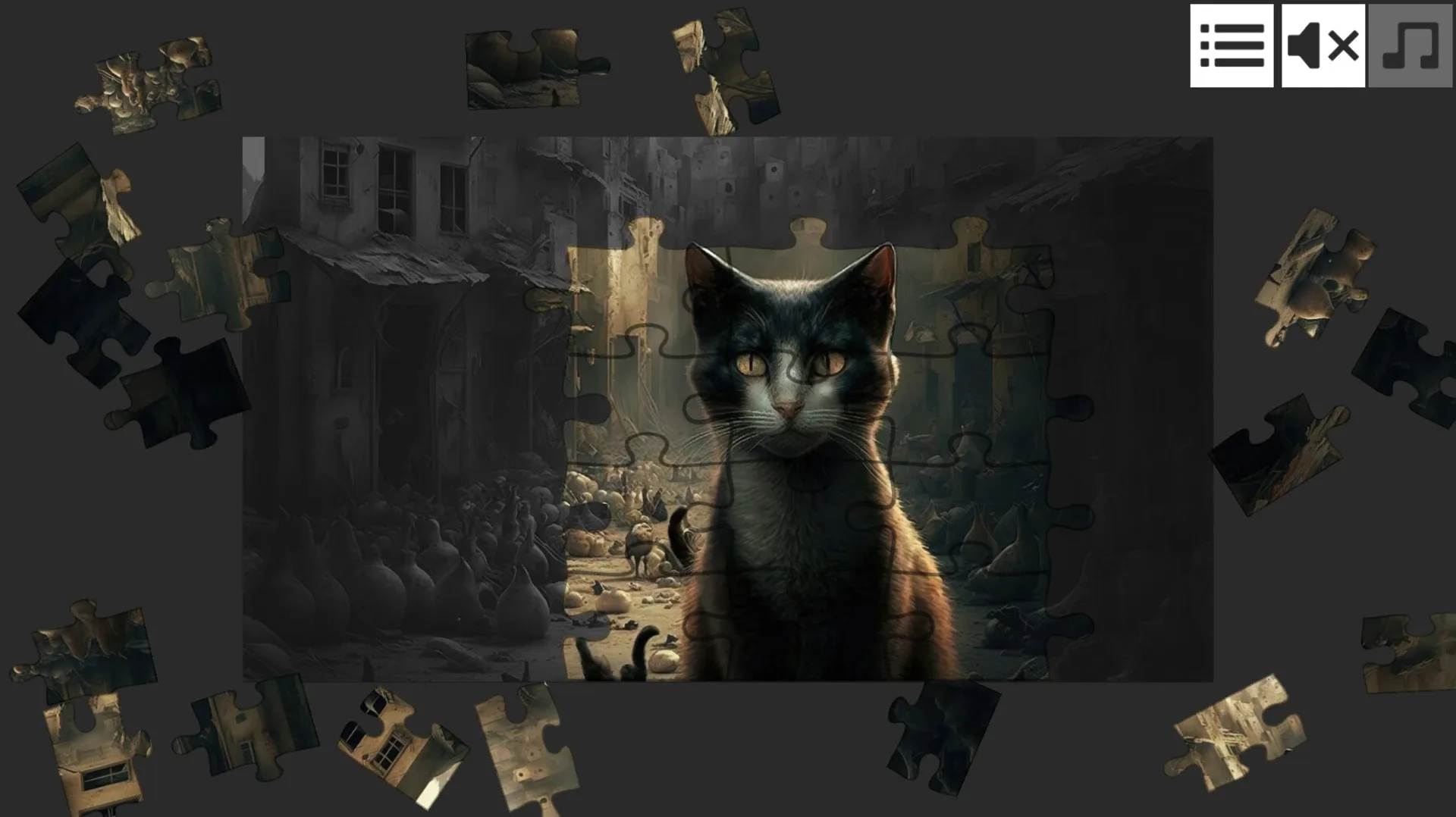 Do puzzles in a new puzzle way! Advanced puzzle layout and involving gameplay will help you to relax after a hard-working day. The player can choose to play with 20, 30, or 42 pieces.