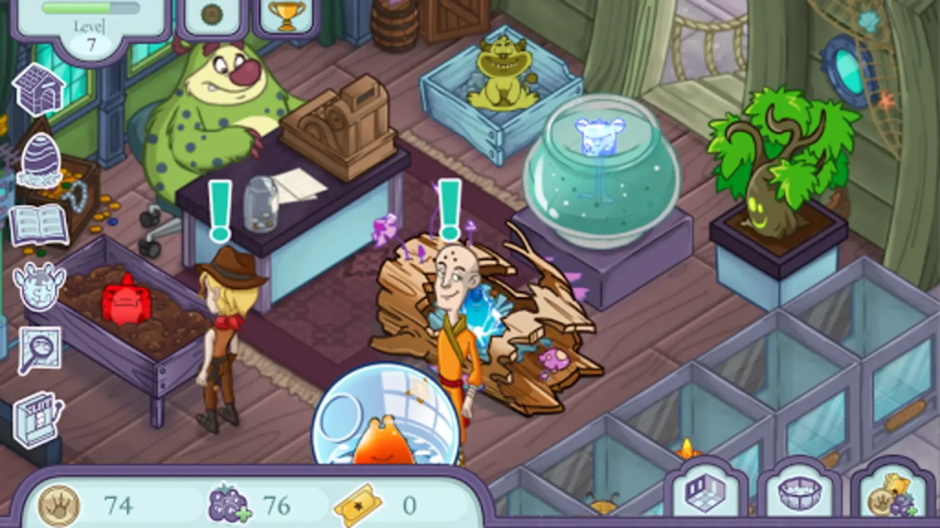 Run your own Monster Pet Shop that grows, exhibits, and sells fantastic magical creatures. Play with, care and feed your creatures to maximize happiness. Happy creatures award more money when you find them good homes. Customize your Monster Pet Shop with three different habitats – Dirt, Grass and Water, and unlock ever more wonderful creatures.