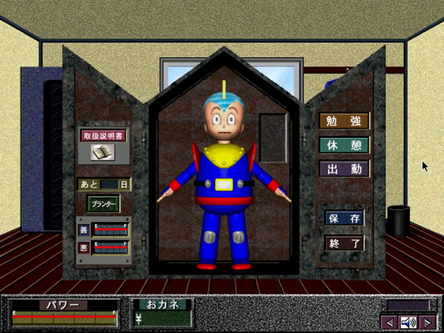 In this Japanese game, you control Tetsuman, a nuclear powered humanoid robot designed to learn the Osaka dialect. As the robot learns, it absorbs your ethical values and this has consequences for good or evil.