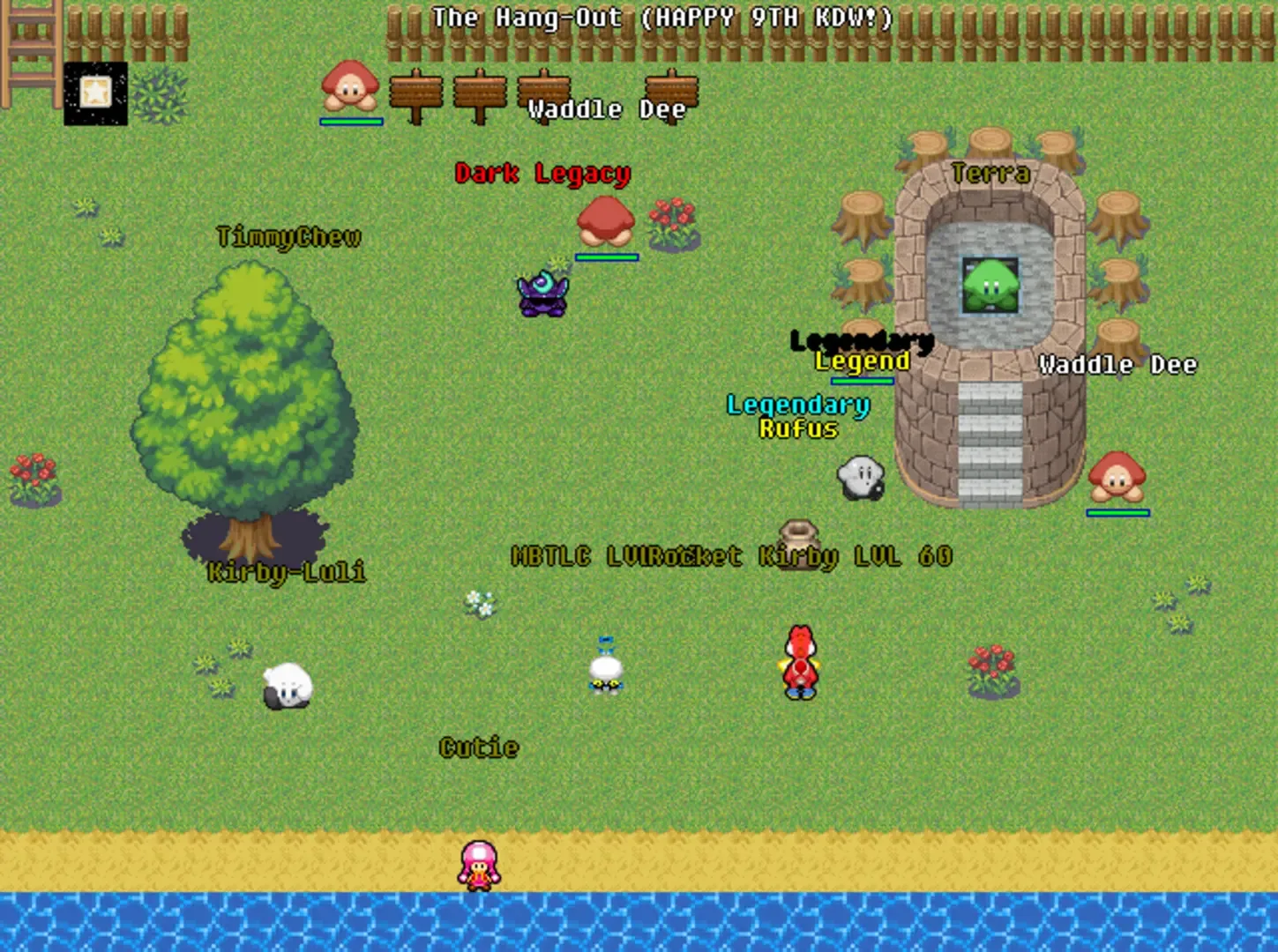 Kirby's Dream World is a fan made virtual community where fans of the Kirby series can create their own character, hang out with friends, chat and discuss a verity of topics, and explore an open world in a MMORPG style. It is completely fan made, with original gameplay, areas to explore, and quests and activities to complete, and in no way reflects the games or gameplay found in Nintendo and Hal's Kirby series--this is a fan made community for fans of the series, and not a Kirby game. In Kirby's Dream World you create your own character and enter the world of Dream World. Once you are in the game you will be able to meet fans from all over the world, and play with them. The idea of this virtual community sandbox is to make your dreams come true. By playing and being active, you will not only be able to play with other Kirby fans, but you will be able to affect the game its self and shape it into your own dreams.