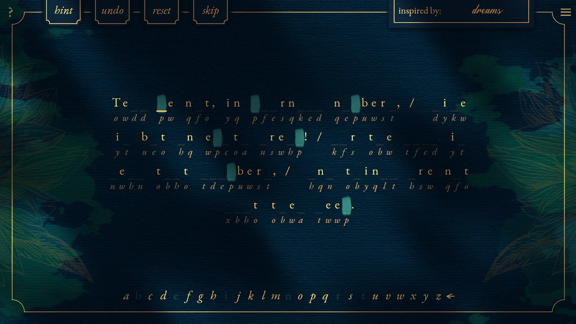 Explore the wonderful world of poetry through deceptively simple substitution ciphers. 10% of every purchase benefits Project Gutenberg, an online library of over 60,000 free ebooks.