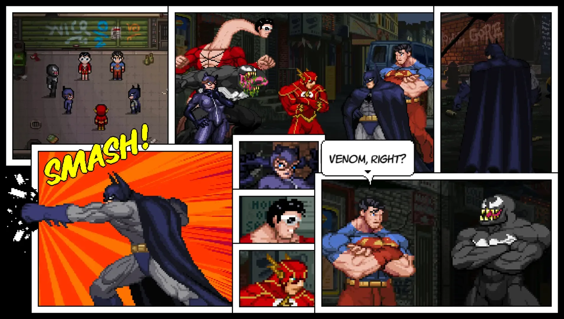 The Lonely League is a comic book style superhero tactical fangame RPG with Superman, Batman, Venom and John Lennon. It alternates between comic book cutscenes and tactical battles inspired by games like Shining Force and Final Fantasy Tactics. Battles are challenging and deeply tactical, and there are always multiple paths to victory, which often include not only attacking but also interacting with map objects and recruiting temporary characters. The story develops from common errands of an ordinary guy, slowly escalating to an epic journey with psychological and political undertones.