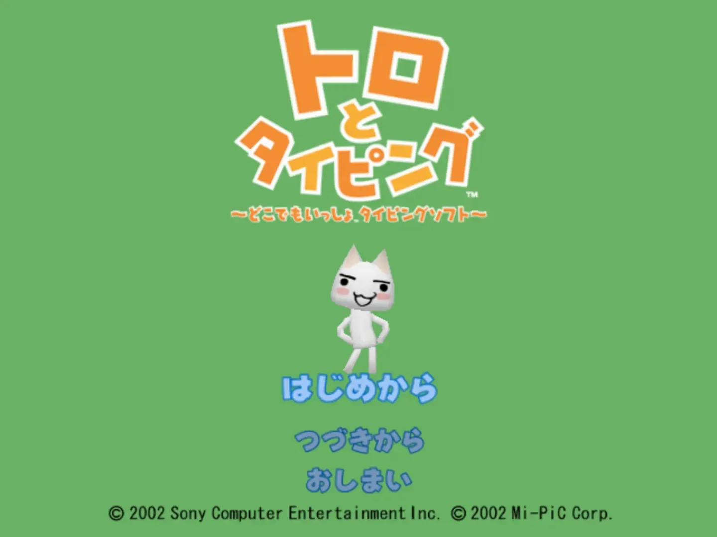 Toro to Typing is a typing-based adventure game based on the Japanese PlayStation game Doko Demo Issyo. The game series concept of communicating with and teaching a virtual pet-type character is integrated with typing prompts.