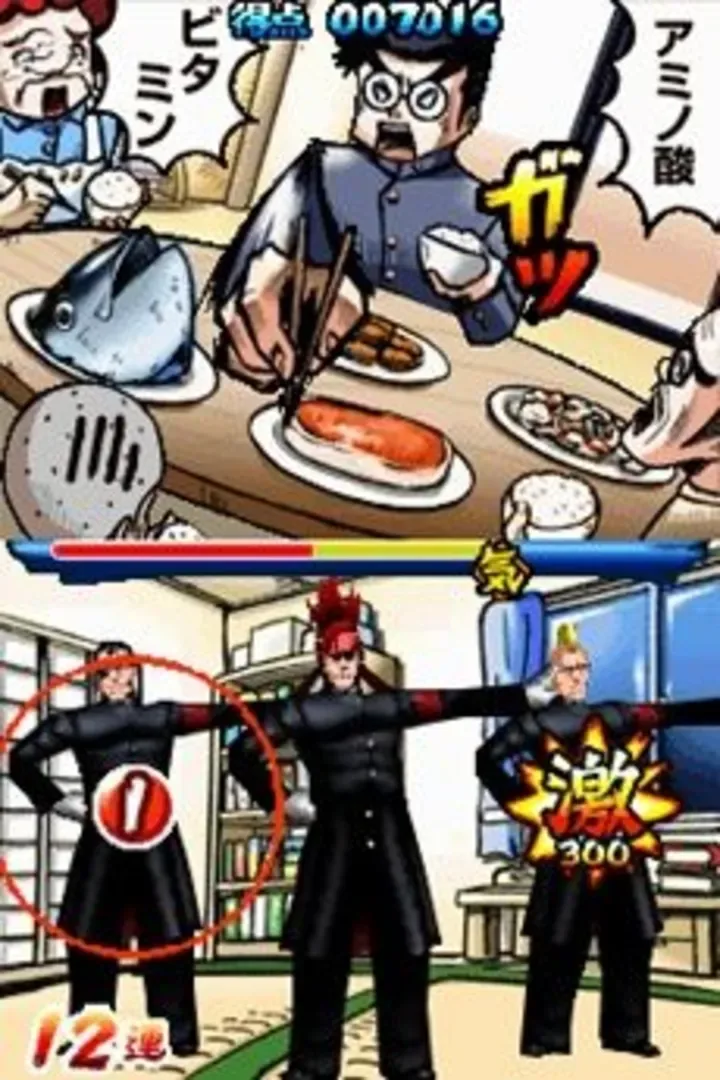 Osu! Tatakae! Ouendan, or simply Ouendan, is a rhythm video game developed by iNiS and published by Nintendo for the Nintendo DS handheld game console in 2005, for release only in Japan. Ouendan stars a cheer squad rhythmically cheering for various troubled people, presented in game in the style of a manga comic. In each stage, players use the DS touchscreen to tap specifically marked spots that appear in rhythm to various Japanese pop songs, scoring points for accurate timing and avoiding a poor performance which can cause the stage to end prematurely. Though never released in Western markets, it was a popular import to these regions, leading to the development of the Westernized spiritual sequel Elite Beat Agents, as well as a direct Japanese sequel Moero! Nekketsu Rhythm Damashii Osu! Tatakae! Ouendan 2.