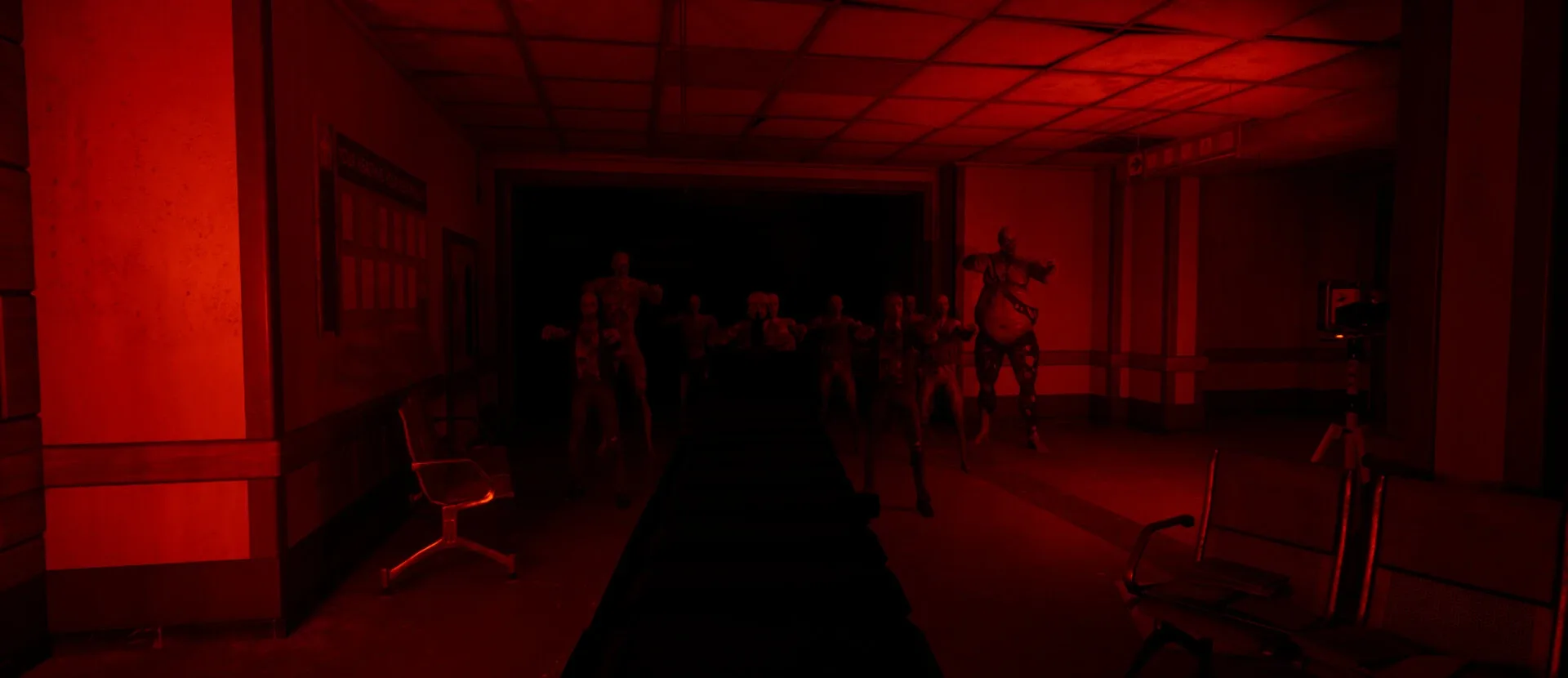 A cooperative game for 4 players, you are a fighter of a special purpose unit, your task is to destroy waves of zombies by taking convenient positions and using tricks